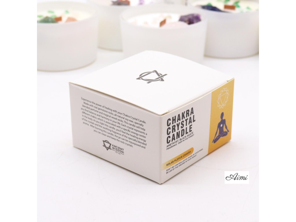 výšte svoju osobnú silu a sebavedomie pomocou našej krištáľovej sviečky Solar Plexus Chakra. Táto sviečka naplnená ametystom a čiernym achátom stelesňuje esenciu čakry Solar Plexus. Vôňa „Deep in the Forest“ evokuje odvahu a sebaistotu.