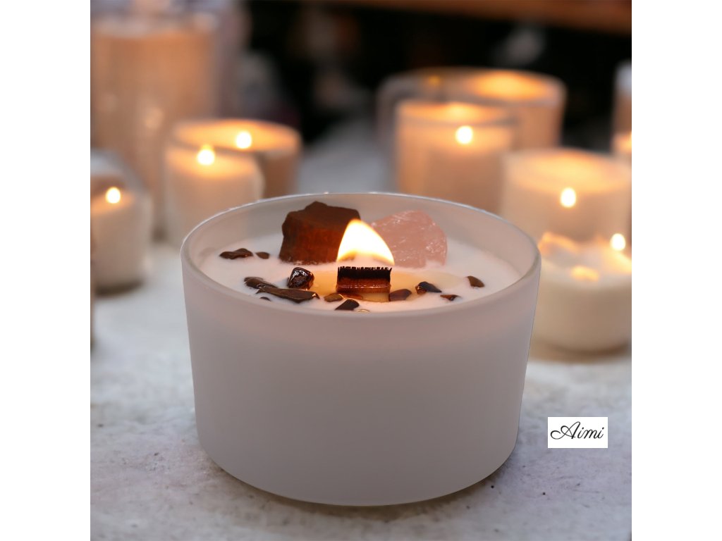 Zažite silu liečenia s touto čakrovou sviečkou s drahými kameňmi. Vyrobené zo skutočných drahokamov, čisto prírodného sójového vosku, špeciálne namiešaného parfumu a magických drevených knôtov.