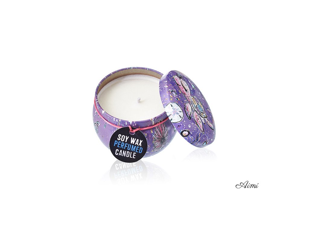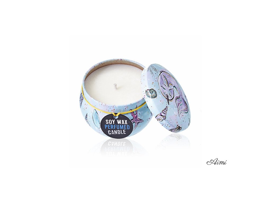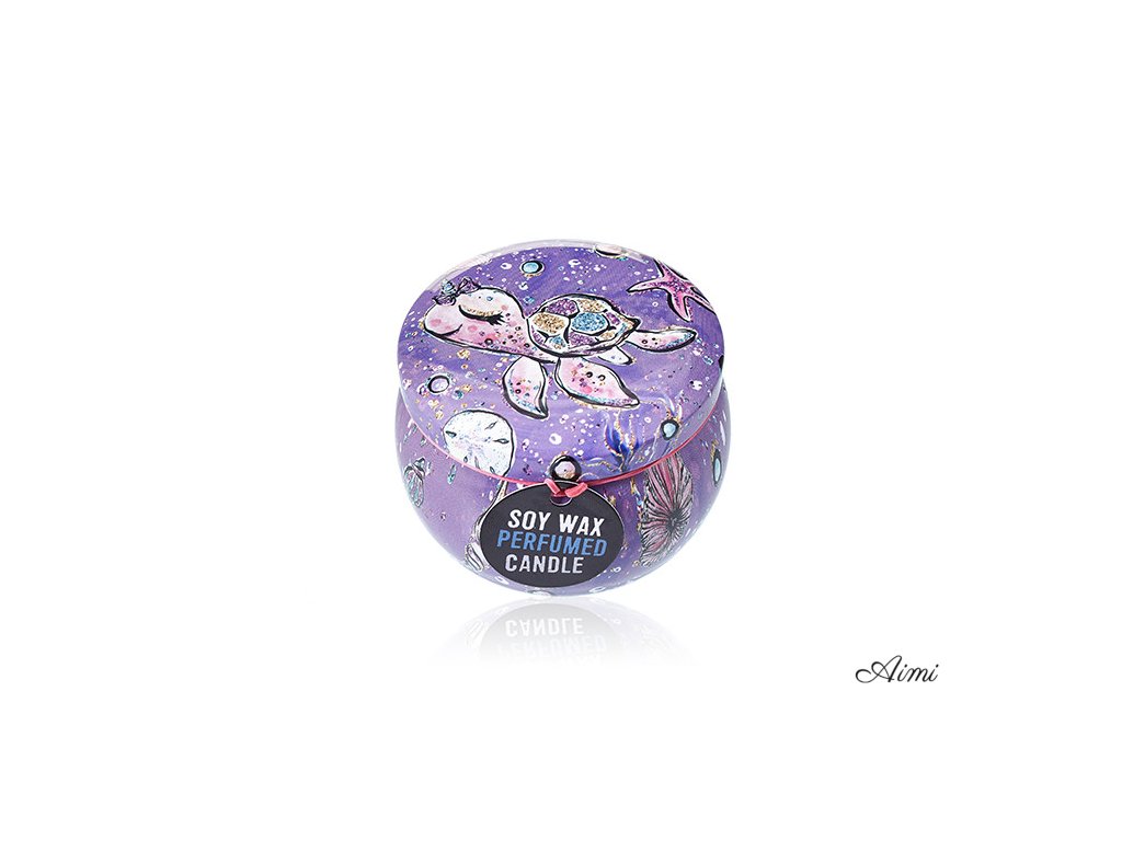 Dekoračná Sviečka v Plechovke - Morský Život - Malina