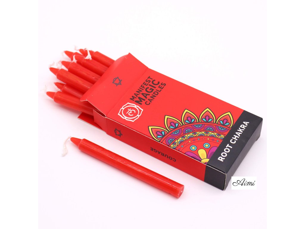 Ezoterické Magické Sviečky (balenie po 12 ks) - Červené - Koreňová Čakra