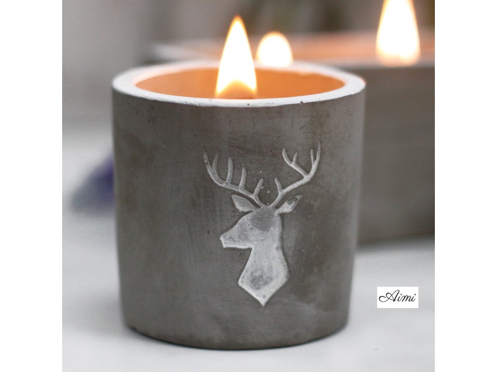 Stredná Betónová Sójová Sviečka - Jeleň - Whiskey & Dym