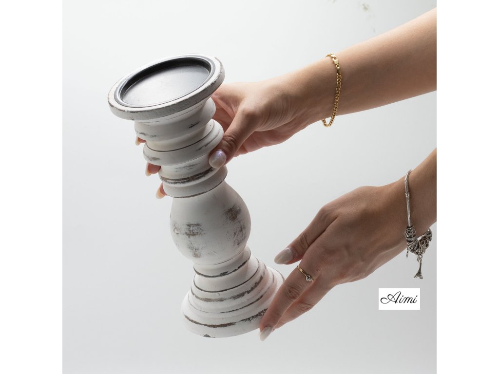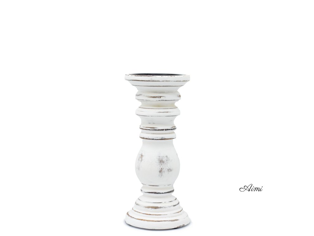 Klasický Stojan na Sviečku - Biela Vymývaná - 23x10cm - Malý