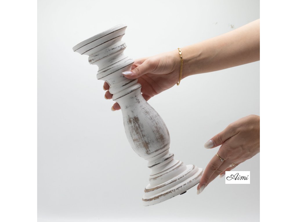 Klasický Stojan na Sviečku - Biela Vymývaná - 30x10cm - Stredný