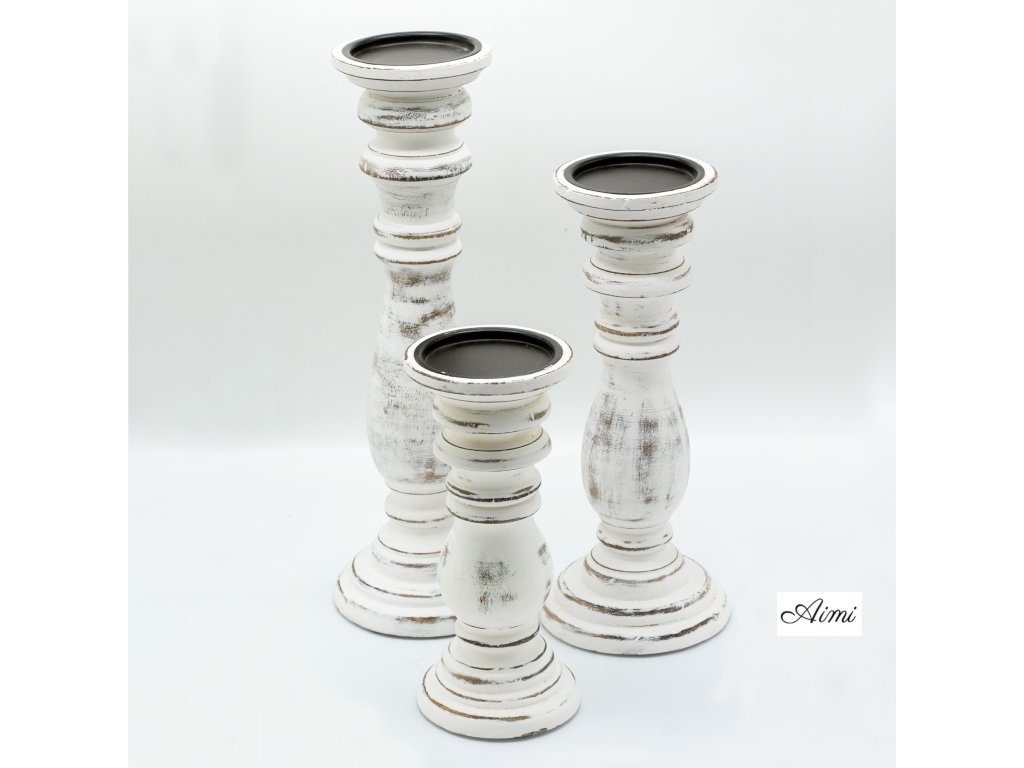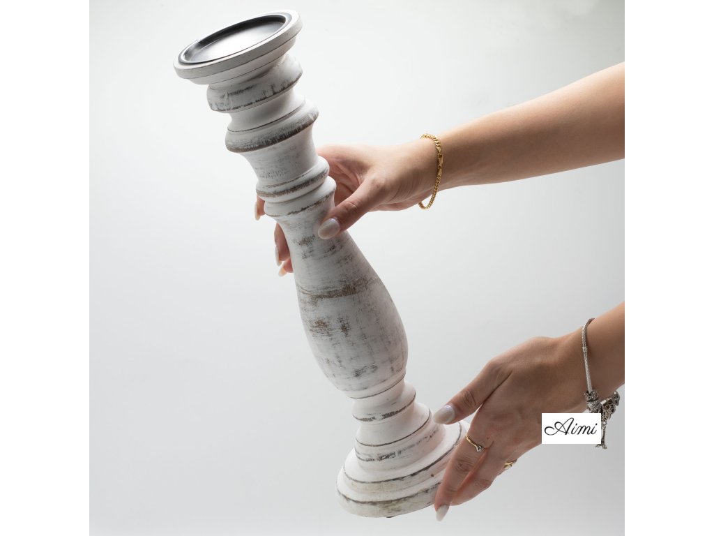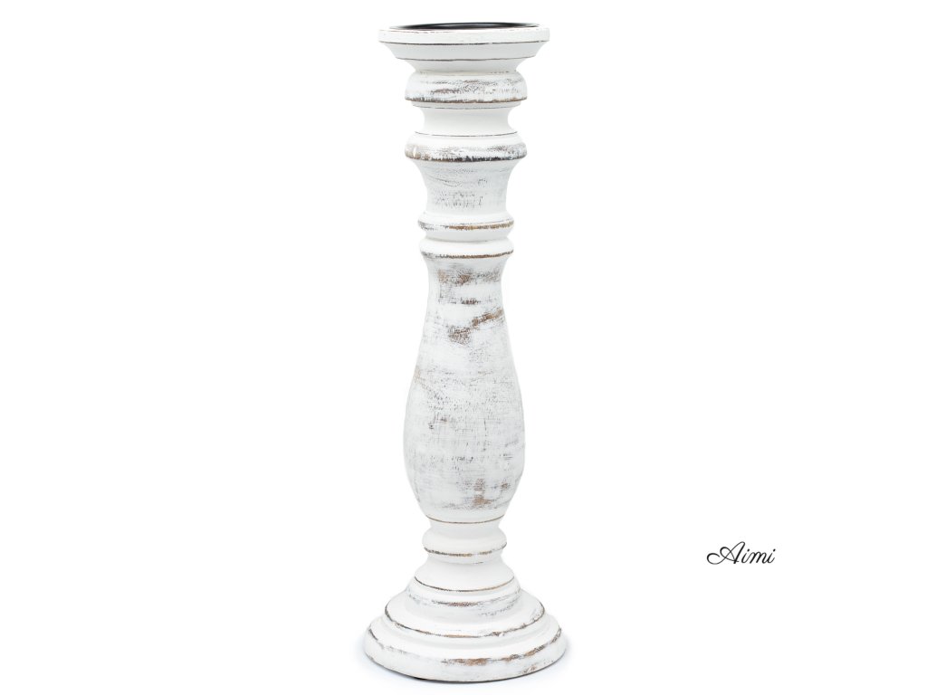 Klasický Stojan na Sviečku - Biela Vymývaná - 37x10cm - Veľký