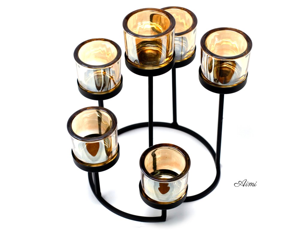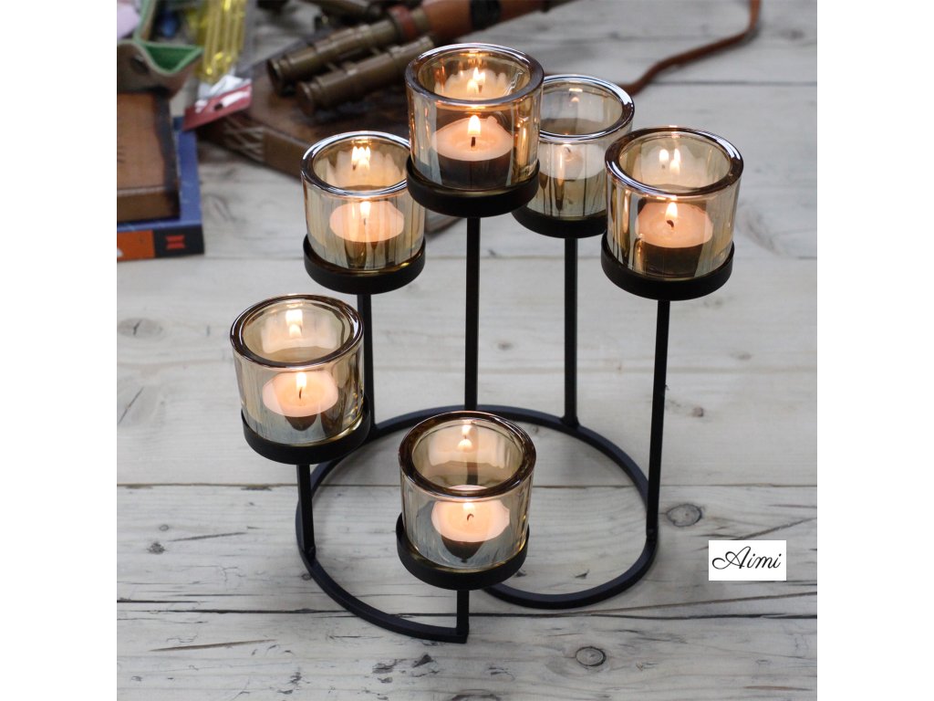 Kovový Votívny Svietnik - na Šesť Sviečok - Okrúhly Strom
