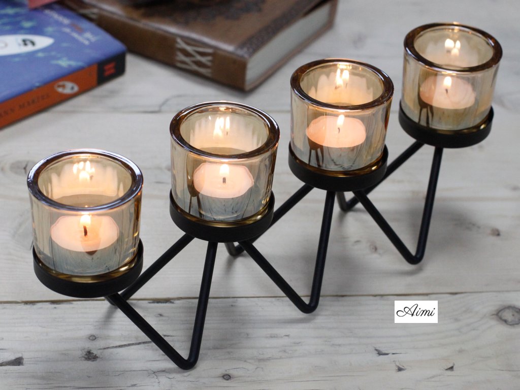 Kovový Votívny Svietnik - na Štyri Sviečky - Cik-cak