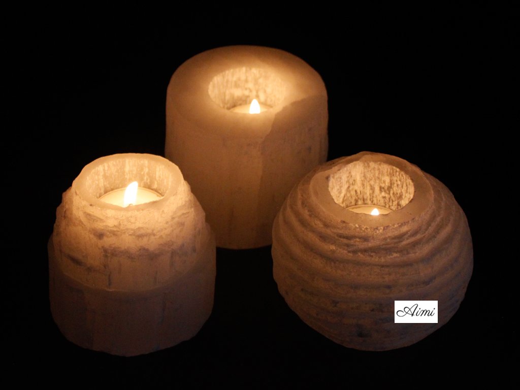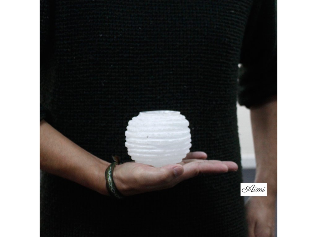 Selenitový Svietnik - Snehová Guľa- 8 cm