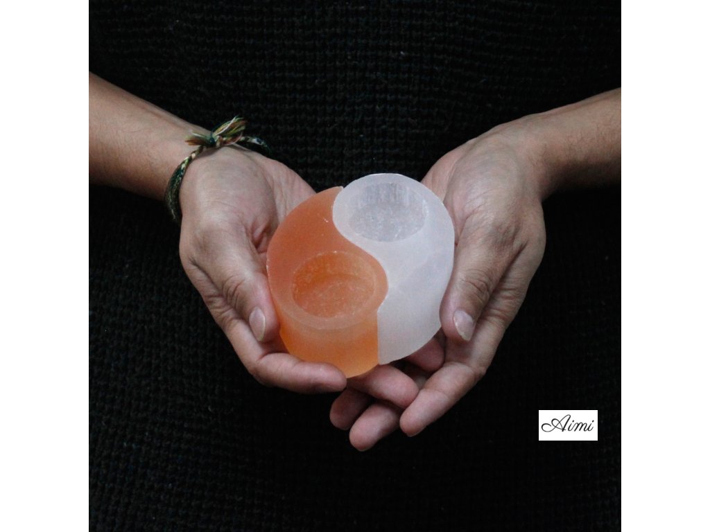 Náš nový sortiment Veľkoobchodný Selenitový Svietnik - Yin Yang je úžasný! Keďže je Selenit druh priesvitného kryštálu, umožňuje plameňu sviečky jemne preblikávať cez svoje steny. Hrany svietnikov sú drsné, čo je pri selenite prirodzené.