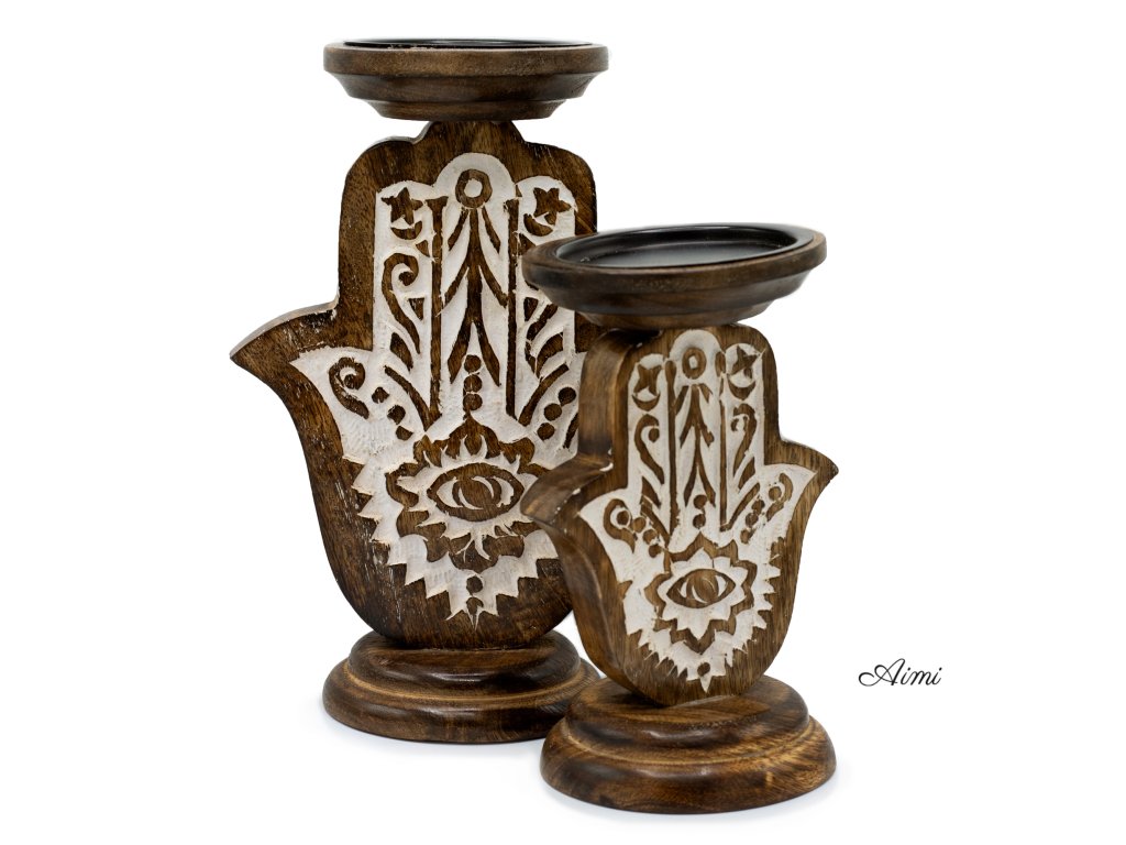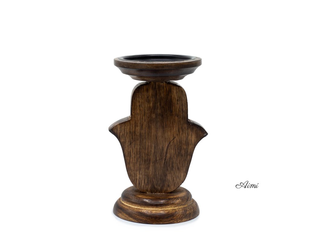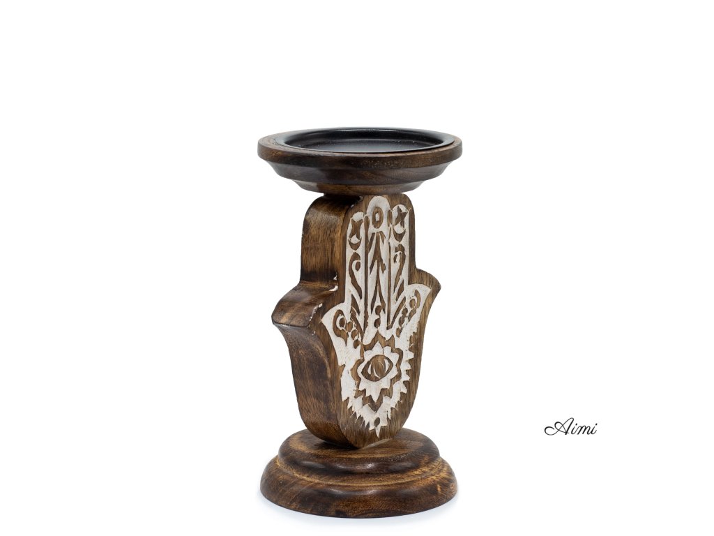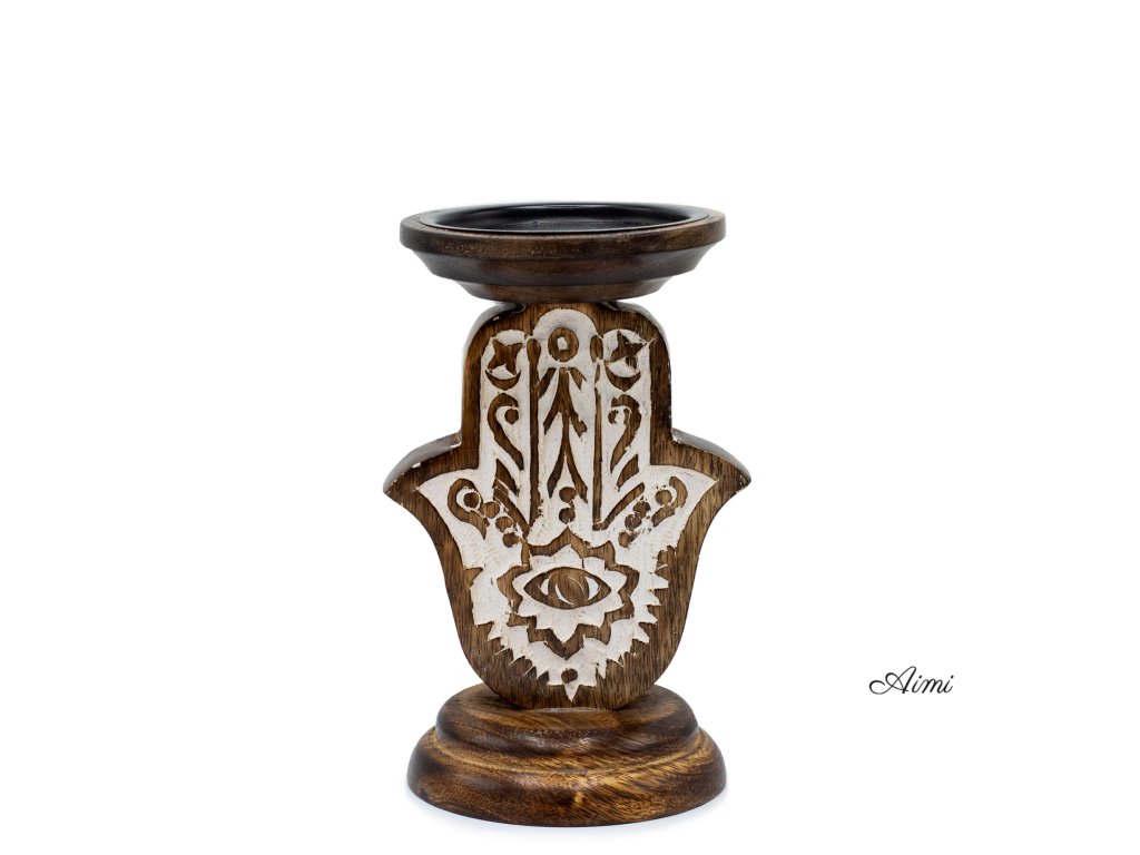 Stojan na Sviečku z Mangového Dreva - Hamsa - Malý 18x11cm