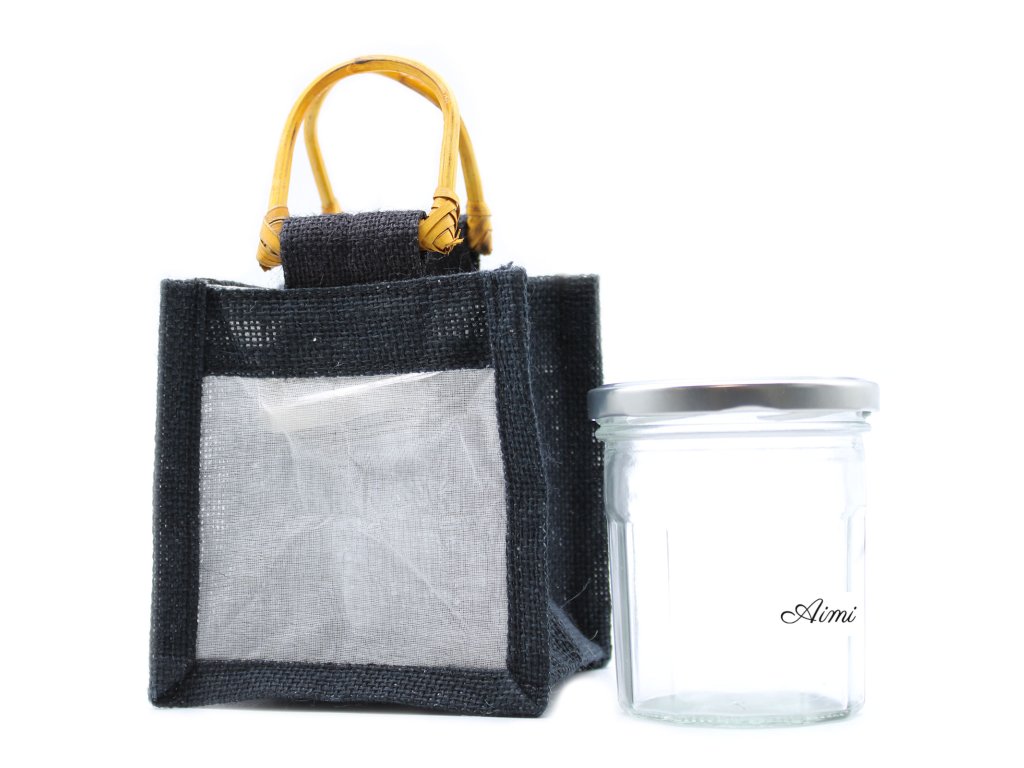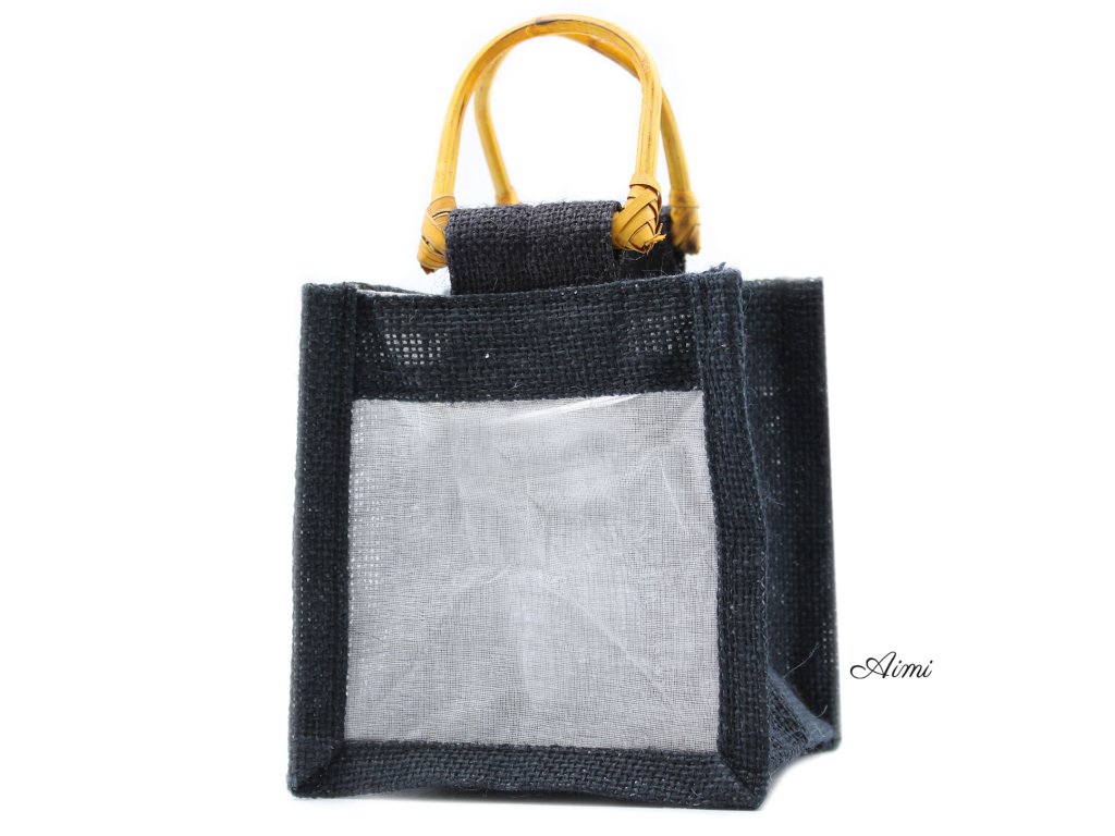 Veľkoobchodné Darčekové Tašky - 1 Okienko - Čierne sú vyrobené z kvalitnej Juty a Bavlny s Drevenými Úchytkami a Okienkami.