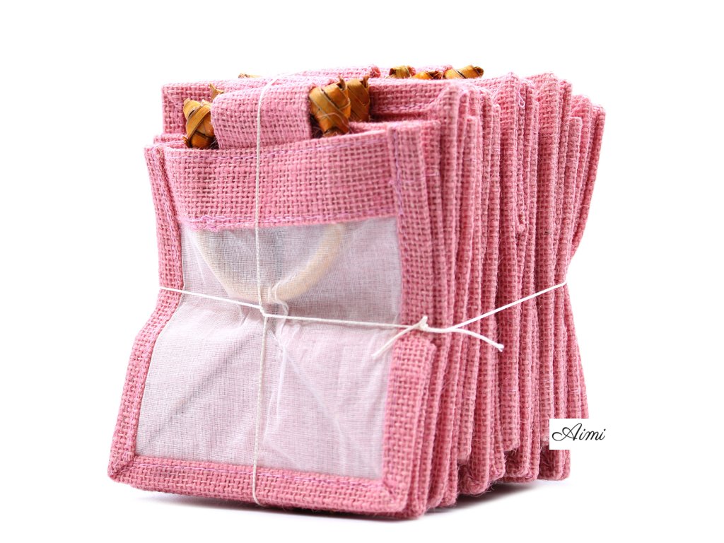Darčekové Tašky z Juty a Bavlny - 1 Okienko - Ružové