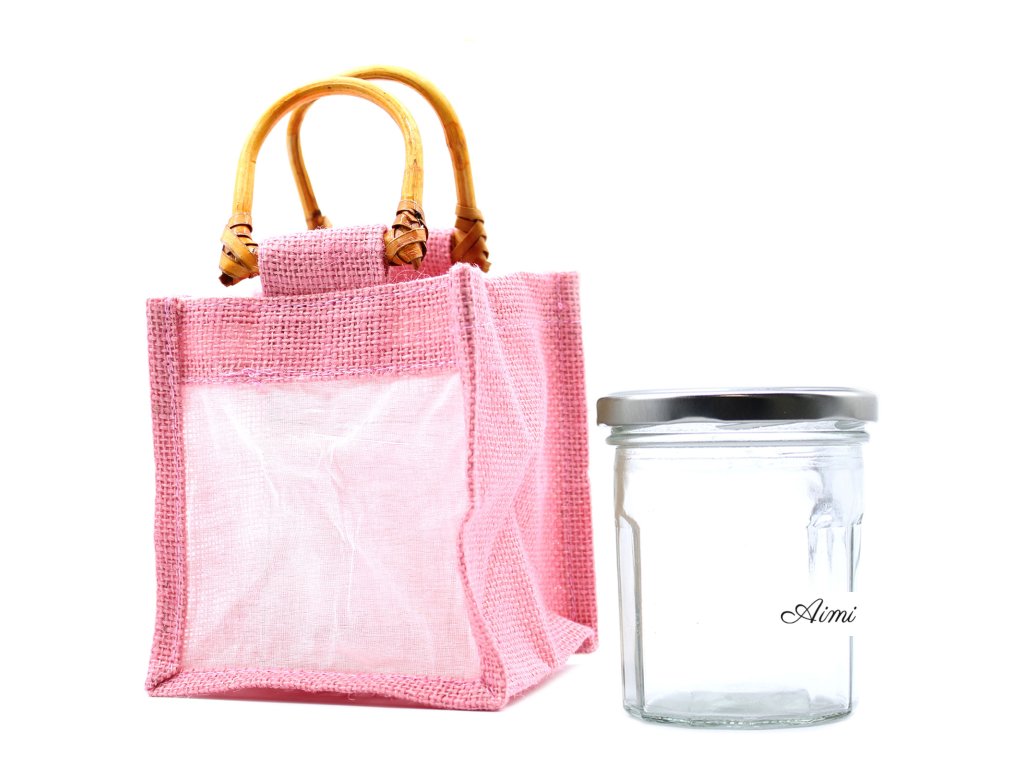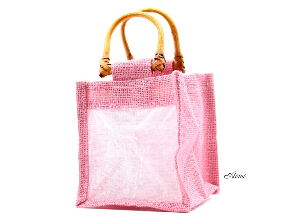 Veľkoobchodné Darčekové Tašky - 1 Okienko - Ružové sú vyrobené z kvalitnej Juty a Bavlny s Drevenými Úchytkami a Okienkami.