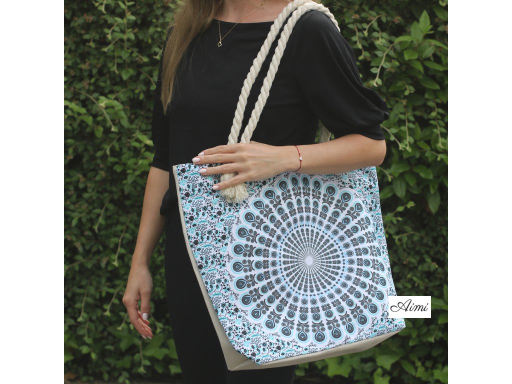 Táto očarujúca vzorovaná Veľkoobchodná Mandala Taška s Povrazovými Ramienkami - Modrá Obloha je vhodná na nákupy, do fitka, na výlety, k vode i do mesta proste kamkoľvek. Táto Taška sa stane krásnym doplnkom každého outfitu.