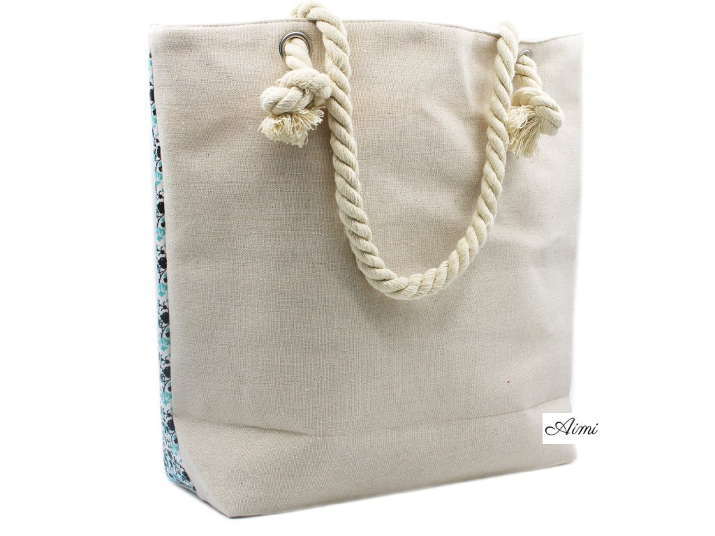 Vo vnútri má malé vrecko, dve povrazové pletené ušká a zapínanie na zips v hornej časti.