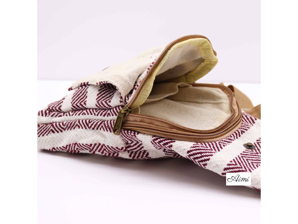 Táto všestranná crossbody taška vyrobená z prírodnej bavlny v nadčasovej bordovej a bielej farbe kombinuje ekologické materiály s nenáročným štýlom.