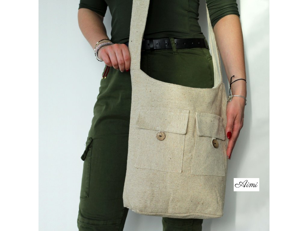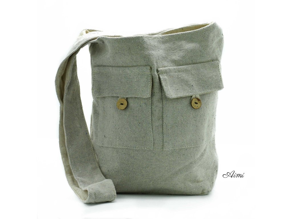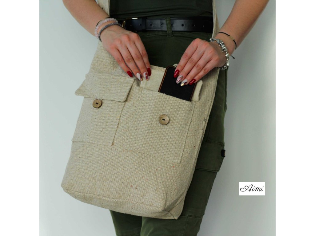 Prírodná Taška s Dvoma Vreckami - Bledošedá - Veľká