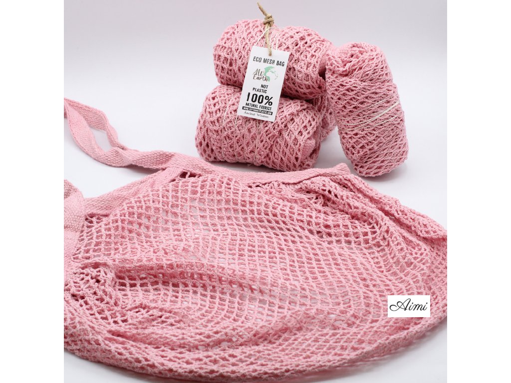 Sieťovaná Taška z Čistej Bavlny - Ružová