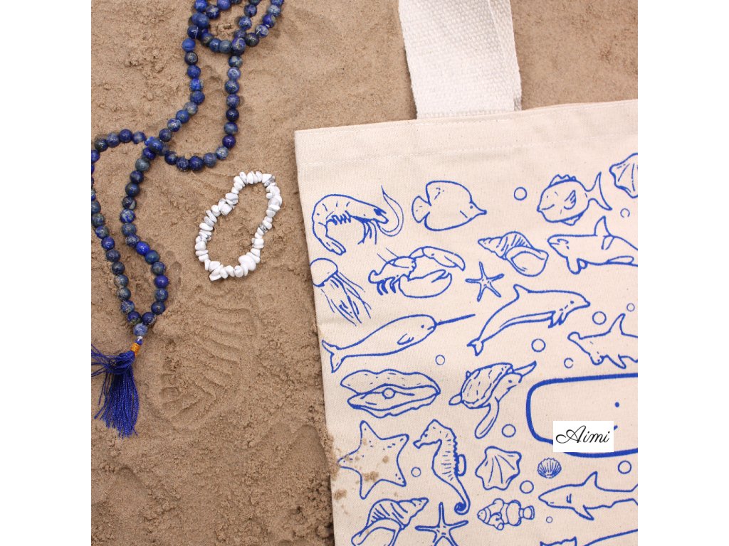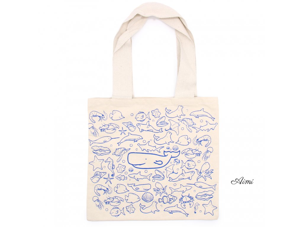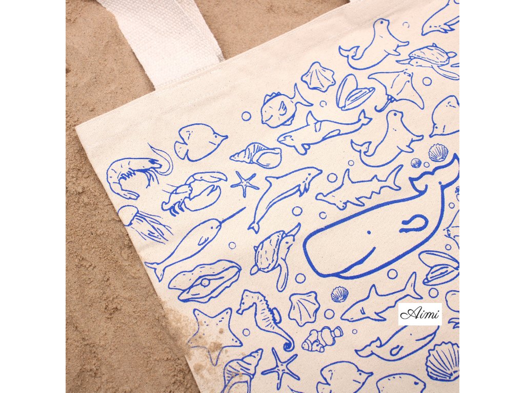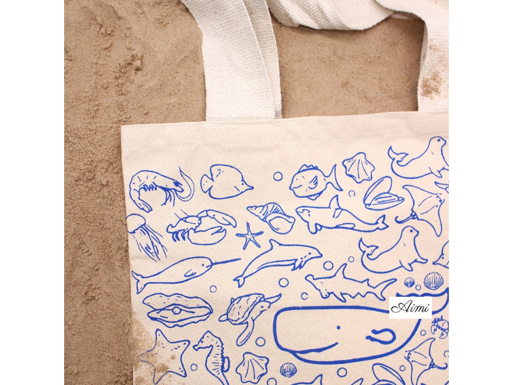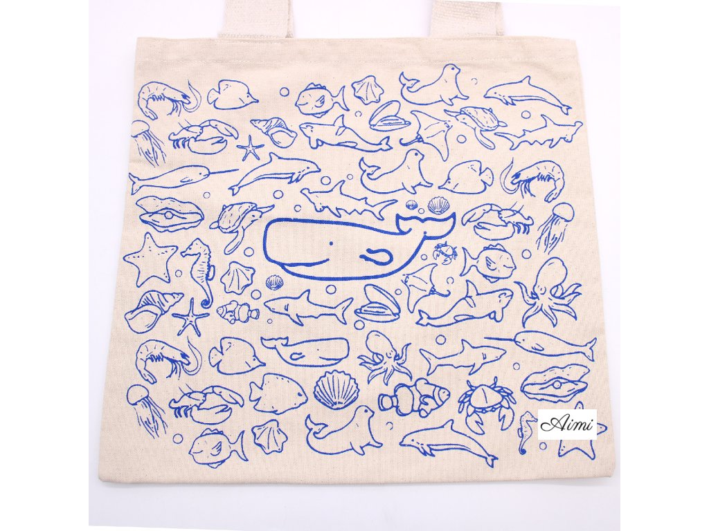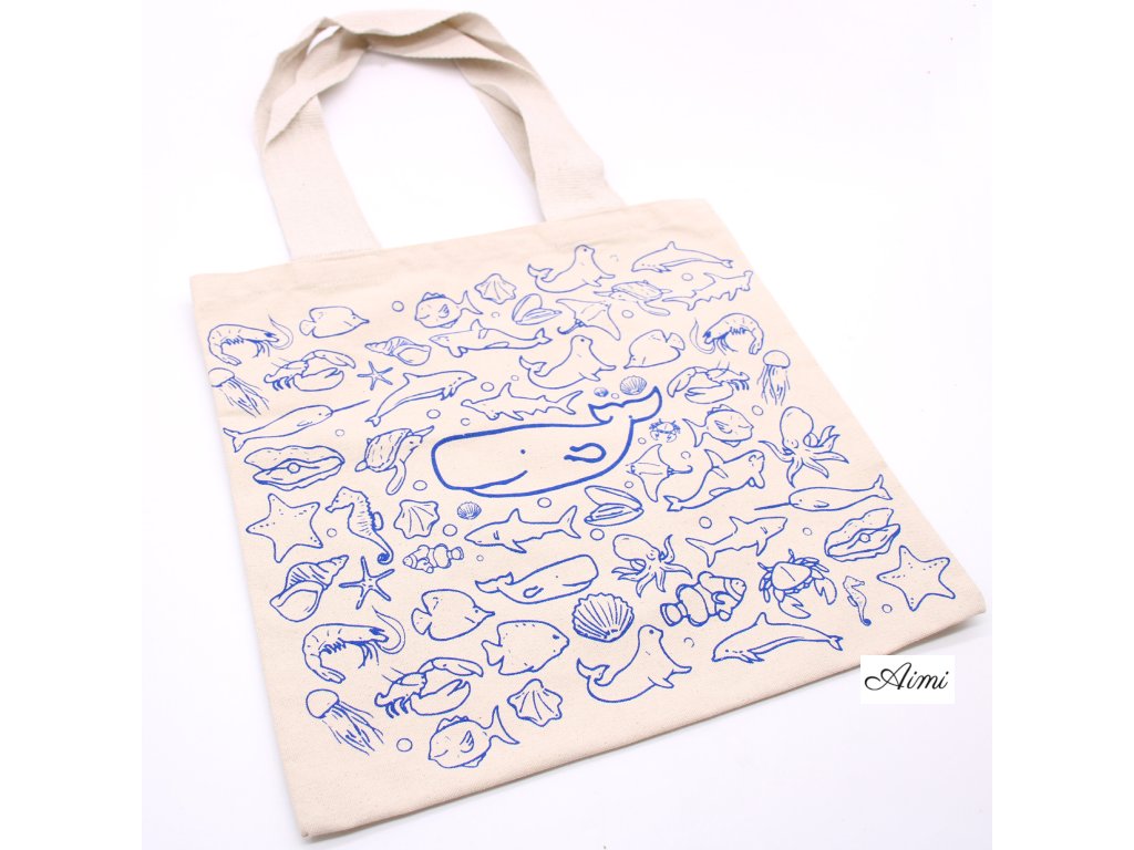 Veľká Bavlnená Nákupná Taška - 38 x 42 cm - Morský Život - 10 oz