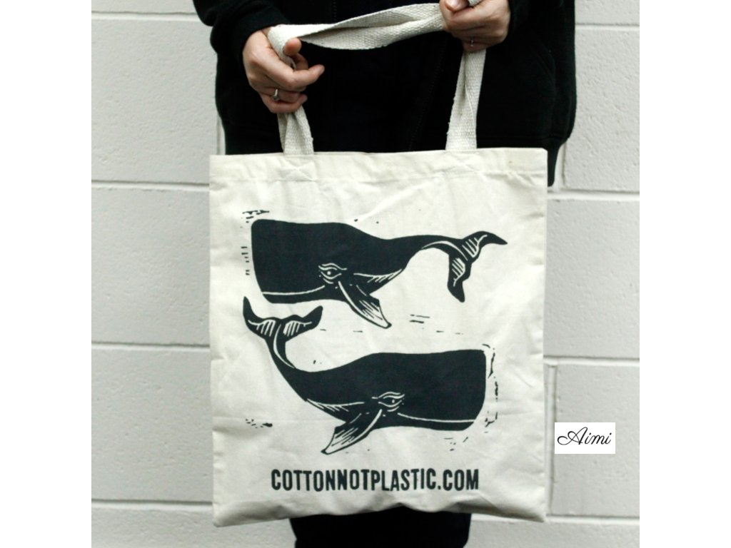 Tašky "Bag for Life" môžete ponúknuť svojim zákazníkom skôr ako plastový sáčok. Návrhy potlačených tašiek zobrazujú morský život a obsahujú logo CottonNotPlastic.com, čo je informatívna stránka o bavlne a jej šetrnosti k životnému prostrediu.