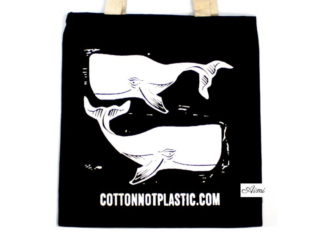 Veľkoobchodné Veľké Bavlnené Tašky Čierne - Veľryby Vám pomôžu nahradiť plastové vrecká, ktoré sú škodlivé pre našu planétu.