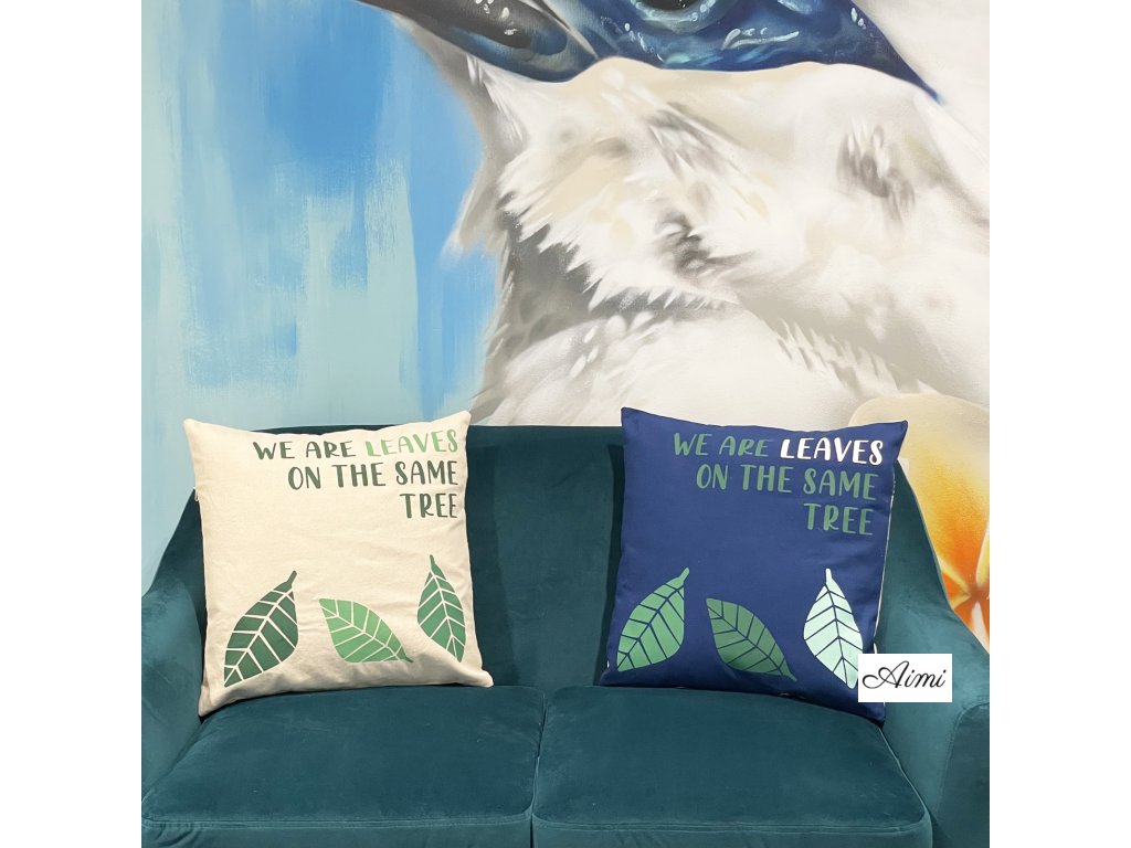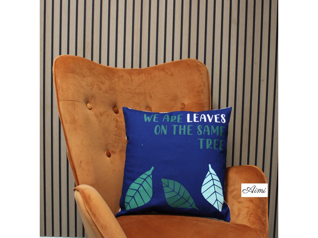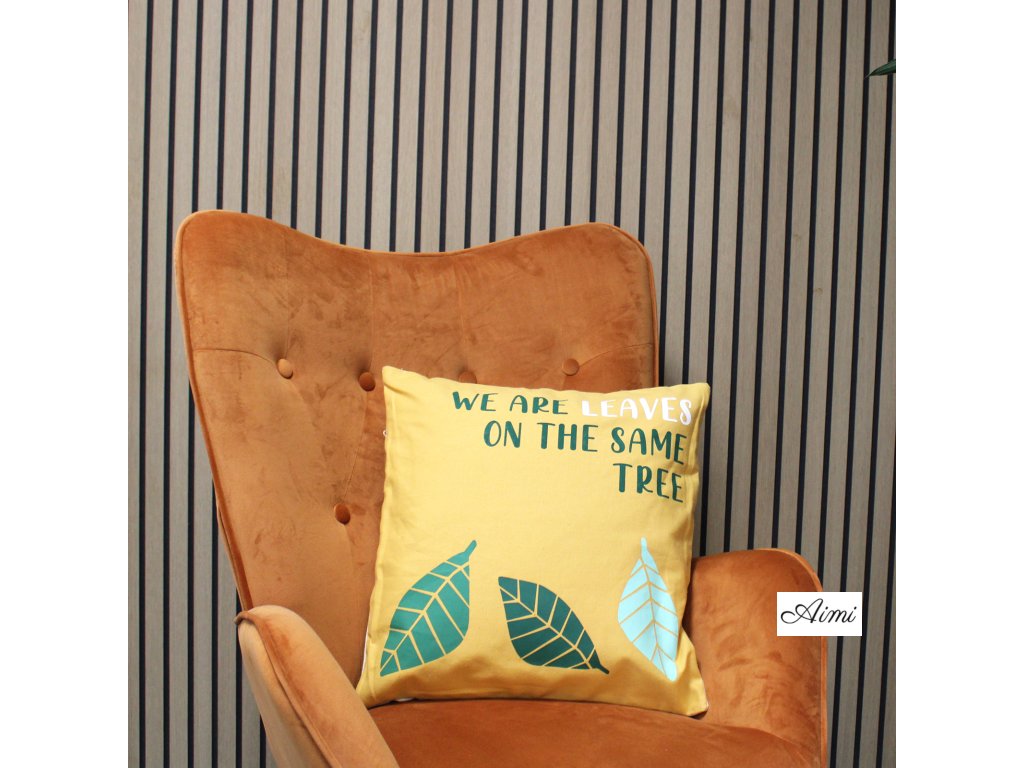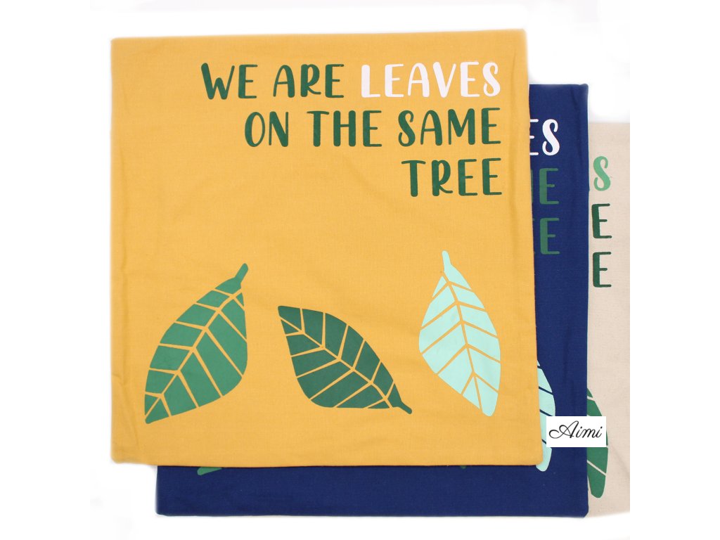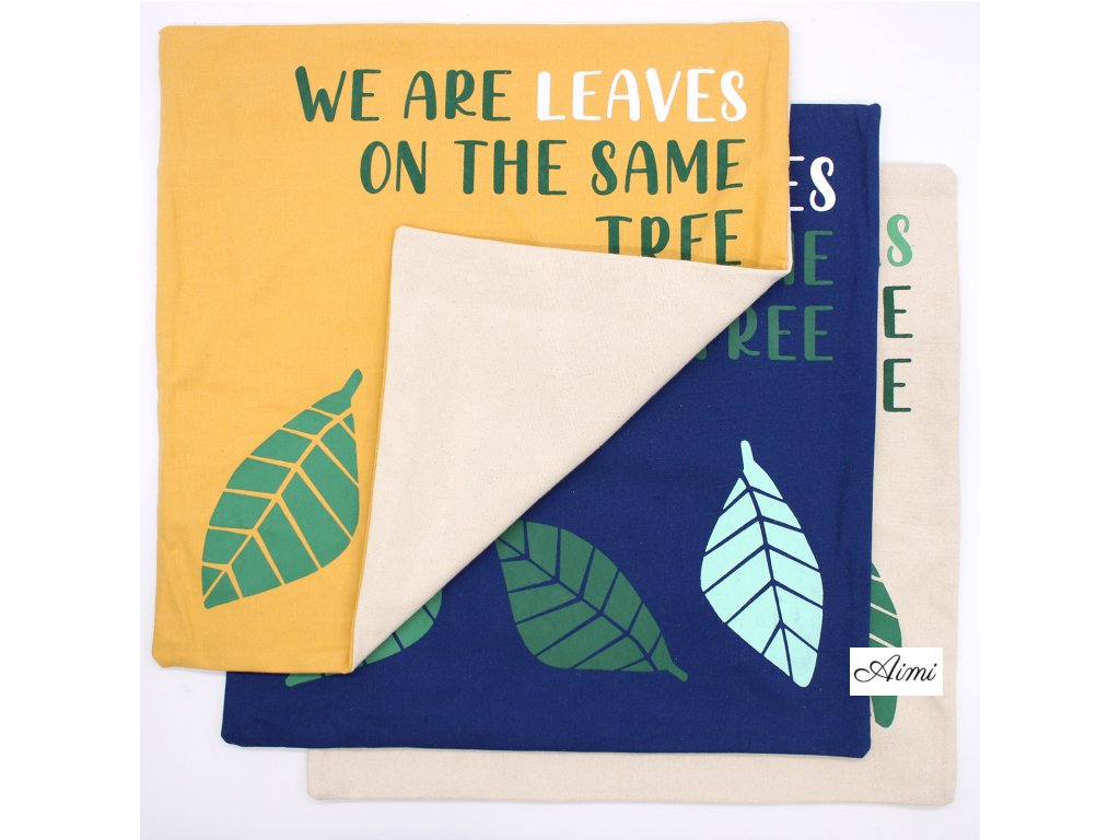 Bavlnená Obliečka na Vankúš s Potlačou - We are Leaves - Žltá, Modrá a Prírodná