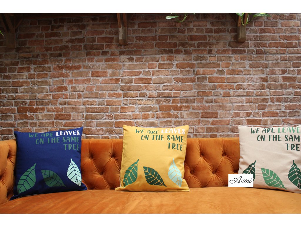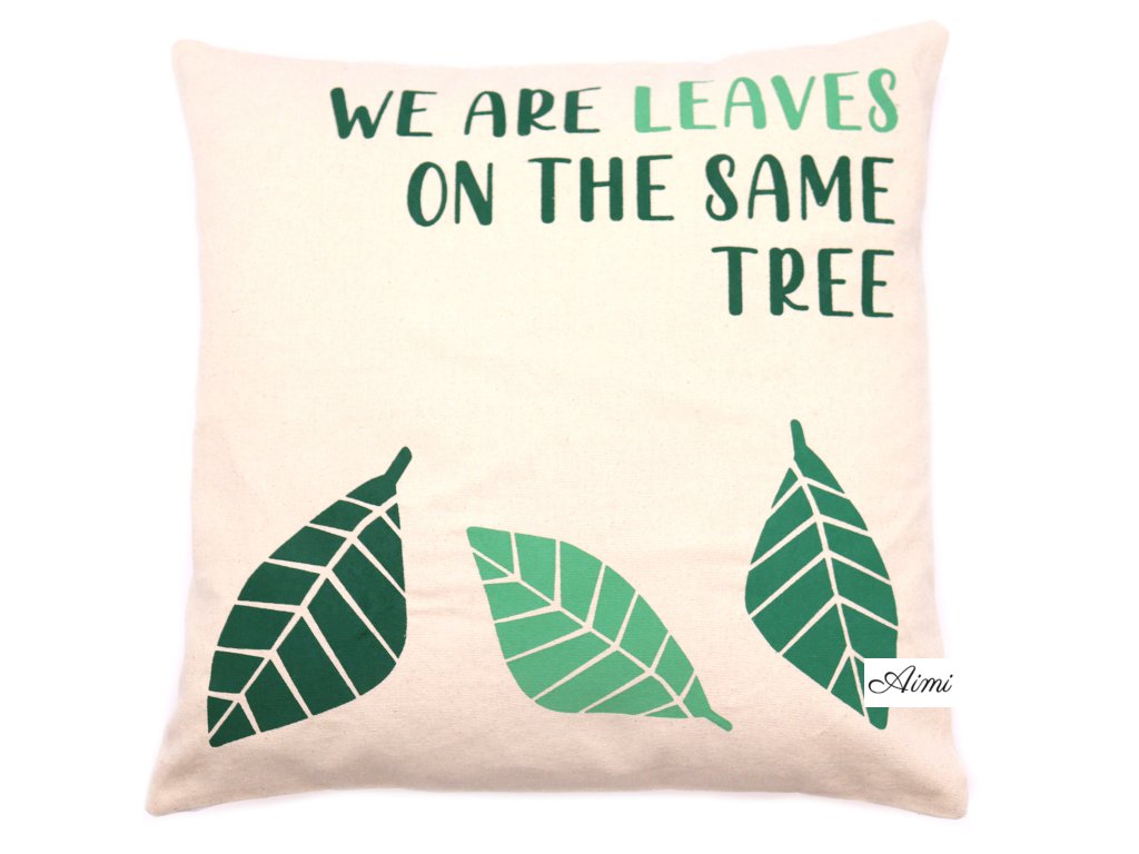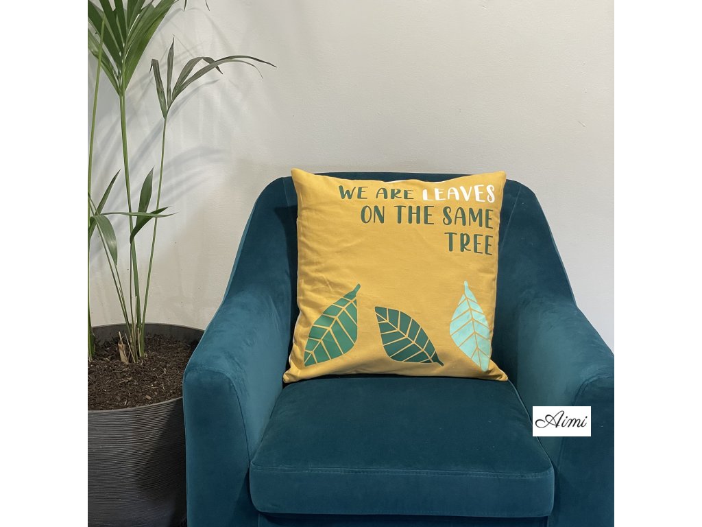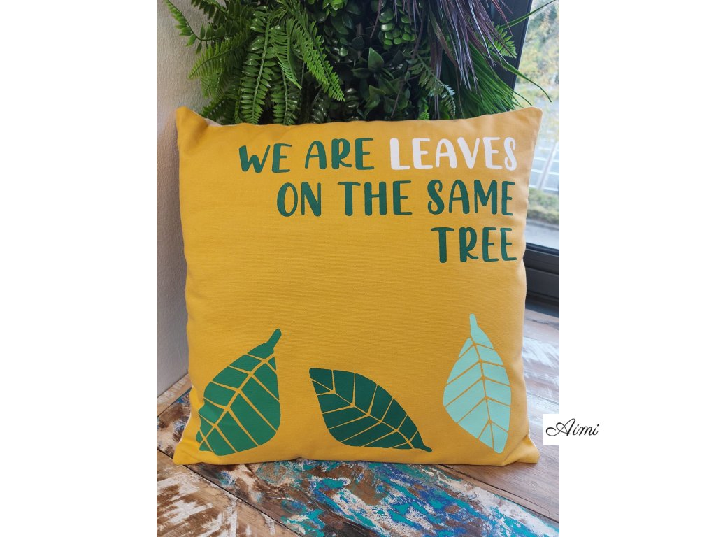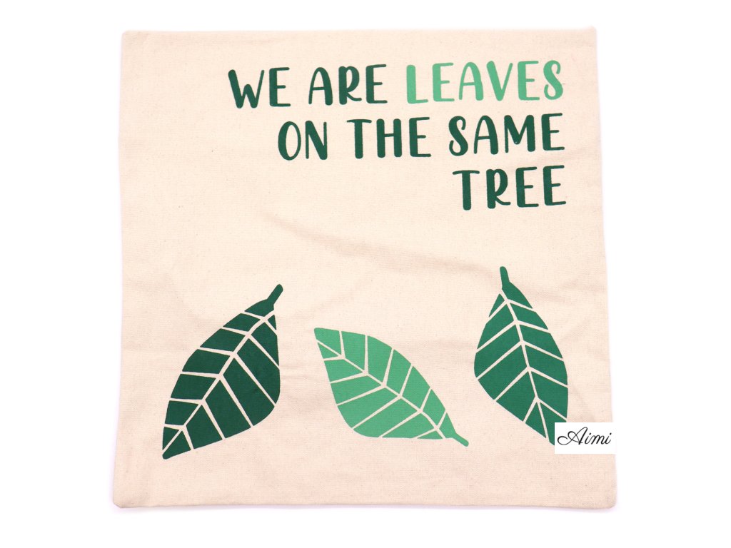 Bavlnená Obliečka na Vankúš s Potlačou - We are Leaves - Žltá, Modrá a Prírodná