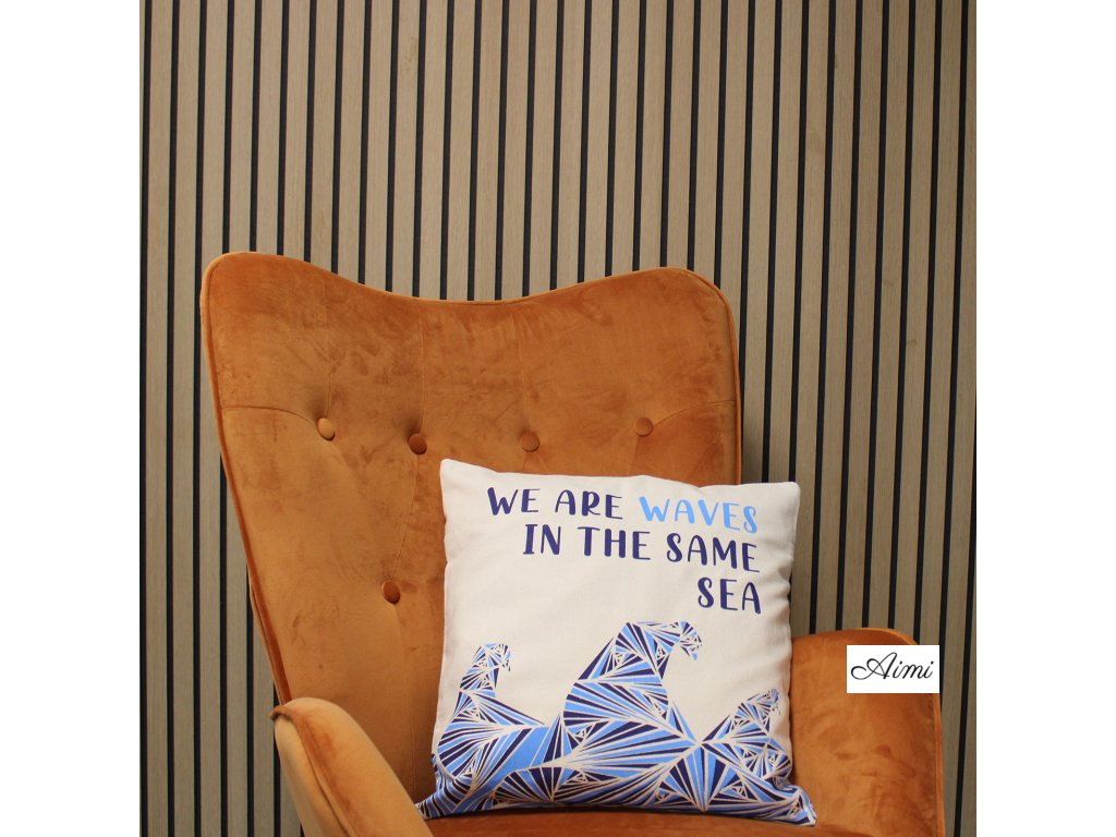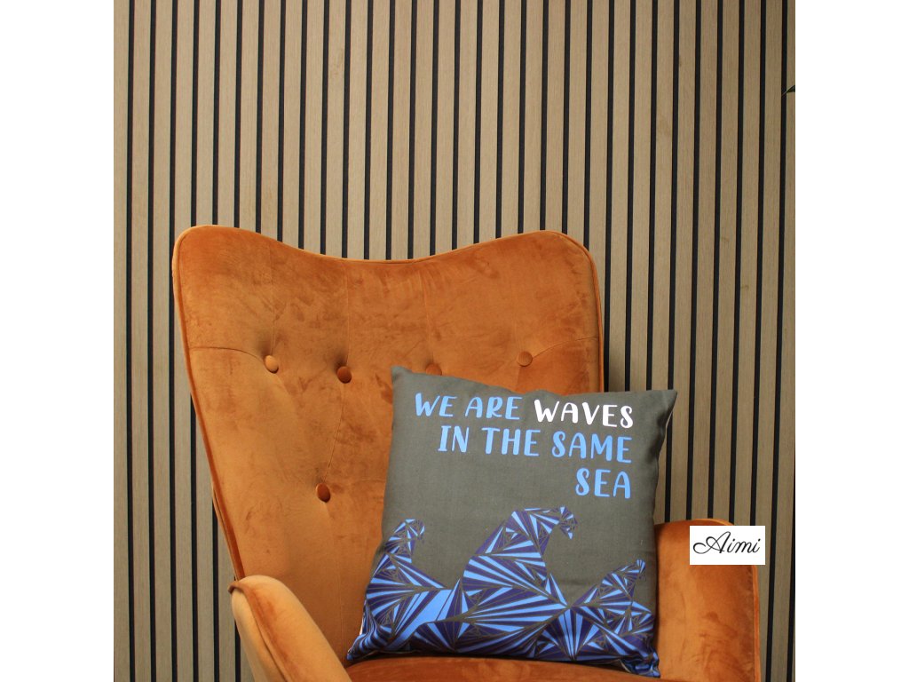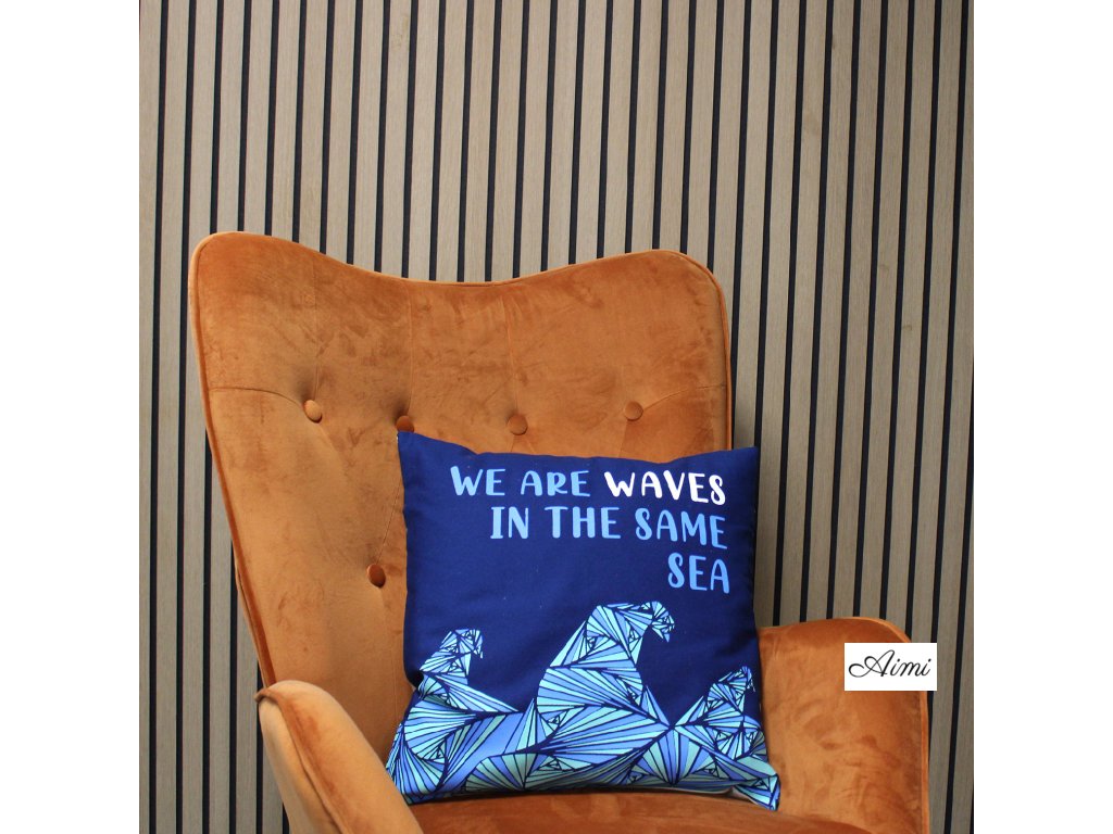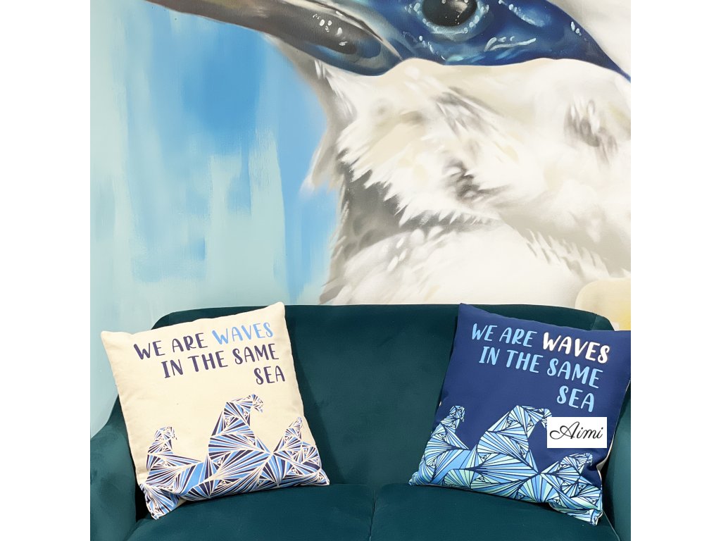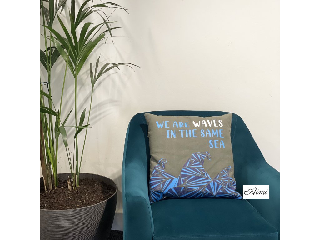 Bavlnená Obliečka na Vankúš s Potlačou - We are Waves - Sivá, Modrá a Prírodná
