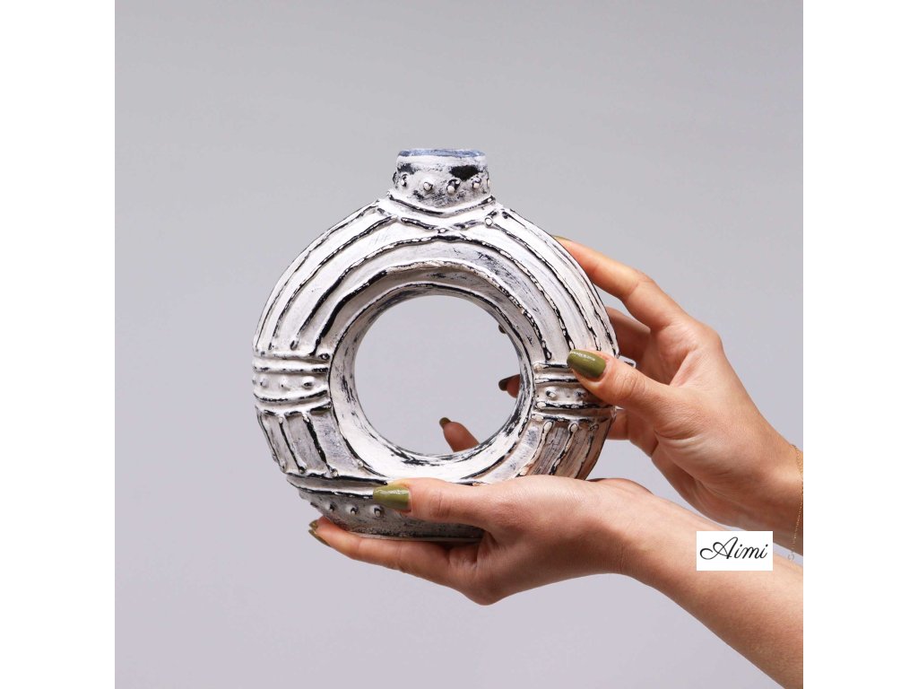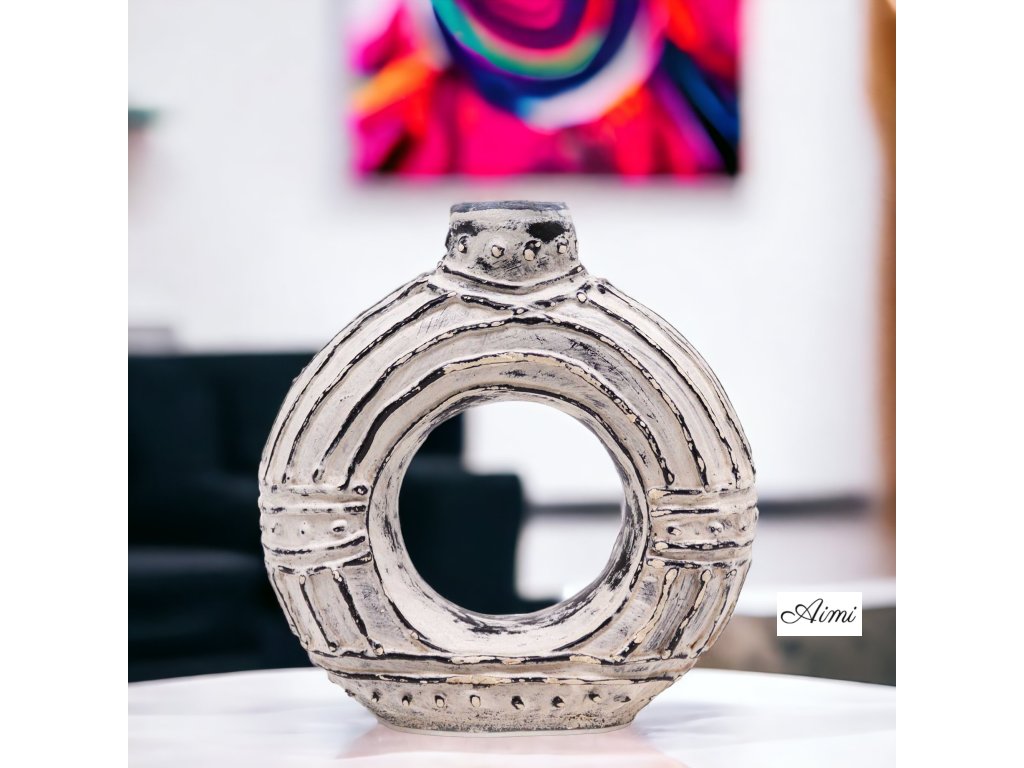 Okrúhla Váza v Tvare Donutu - Krémová 18 cm