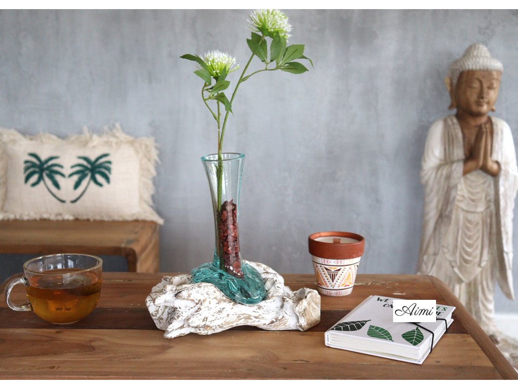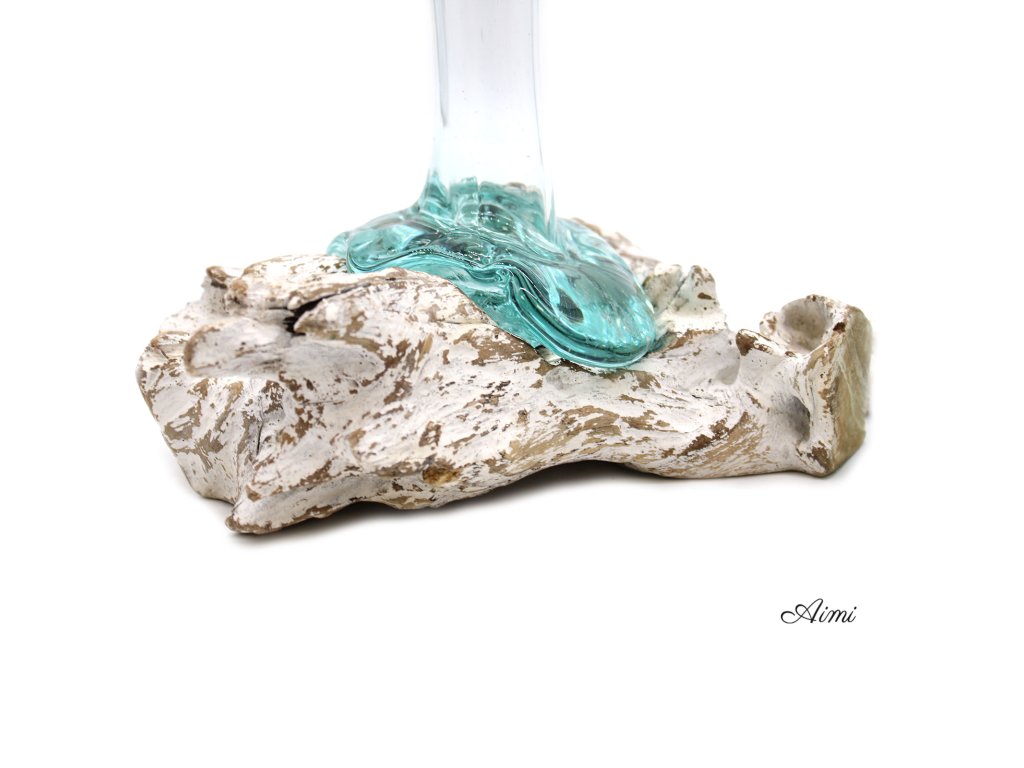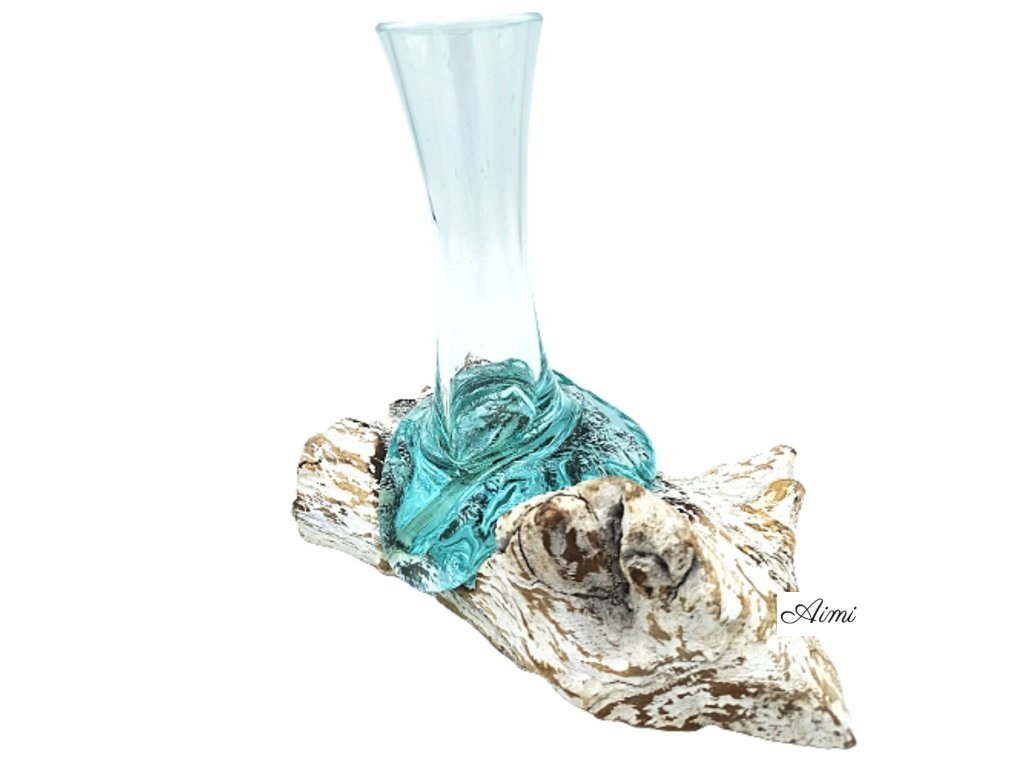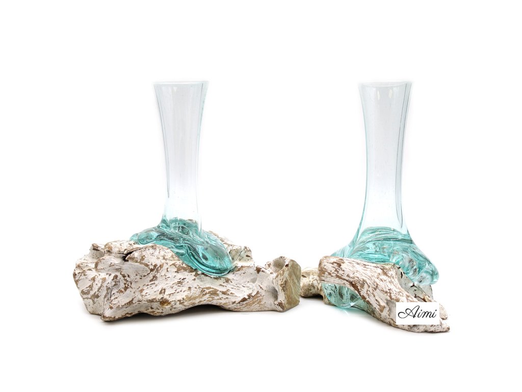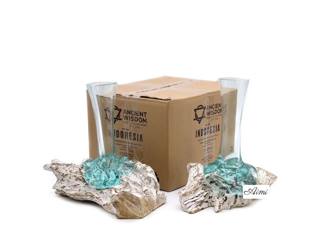 Veľkoobchodné Roztavené Sklenené Nádoby na Dreve sú nový hit, ktorý k nám prichádza z Bali. Ručne vyrábané fúkaním z recyklovaného skla a koreňov z dreva Gamal. Ešte horúce sklo sa umiestni na výrez koreňa a nechá sa zatvrdnúť do tvaru dreva čím sa zaistí jeho dokonalé uchytenie. Každý z týchto výrobkov je jedinečný.