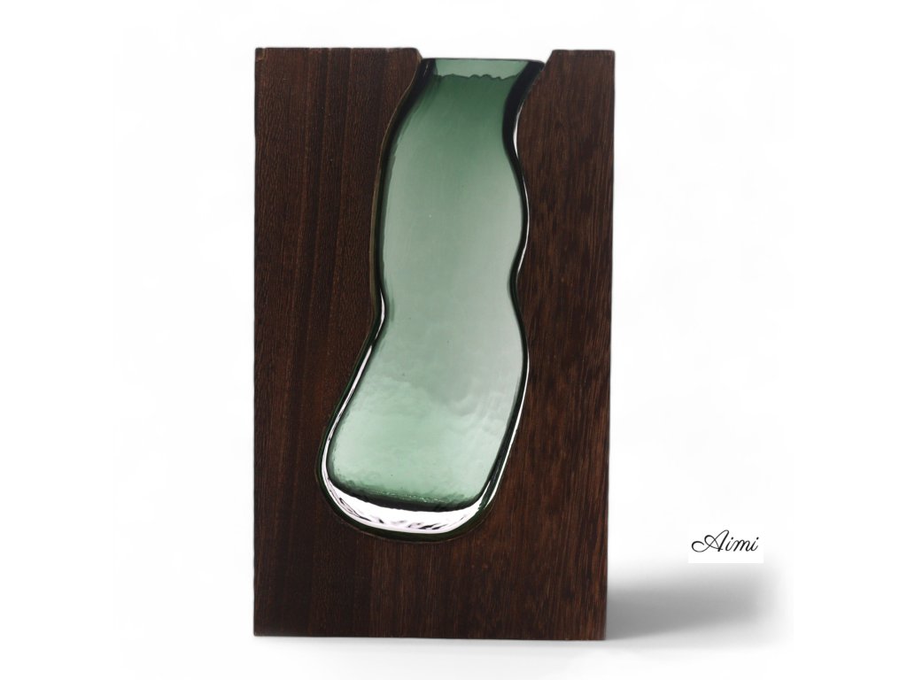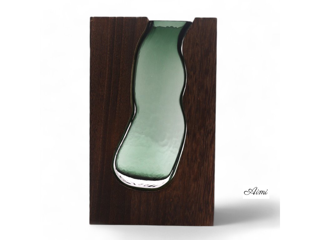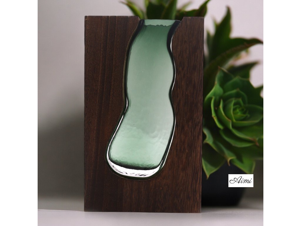Sklenená váza / Terárium z Tmavého Tungového Dreva - 14,5 x 5 x 23 cm