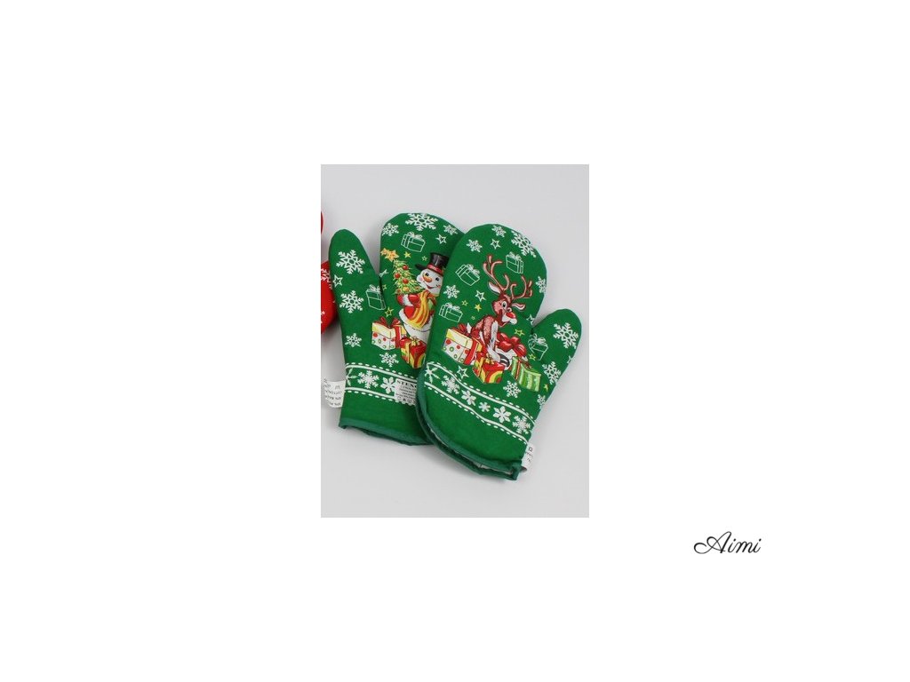 Vianočná Kuchynská chňapka - súprava 2ks rukavica s Vianočným motívom, zelená s magnetom