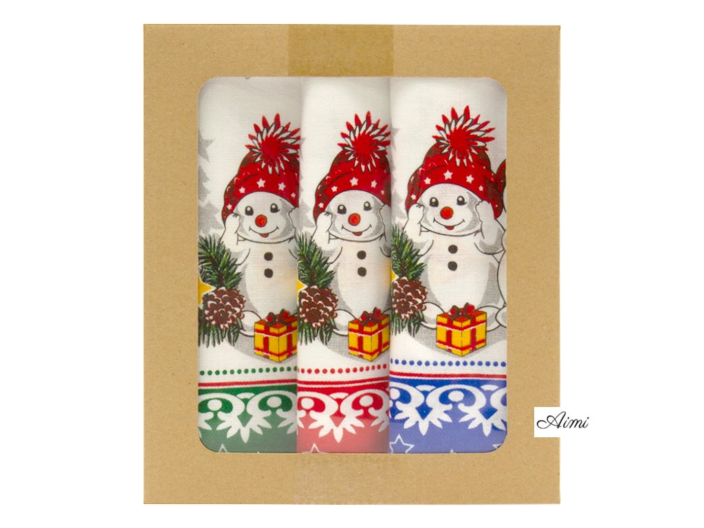 Vianočné kuchynské utierky 45*65cm SADA 3ks v darčekovom balení s potlačou - SNEHULIACI