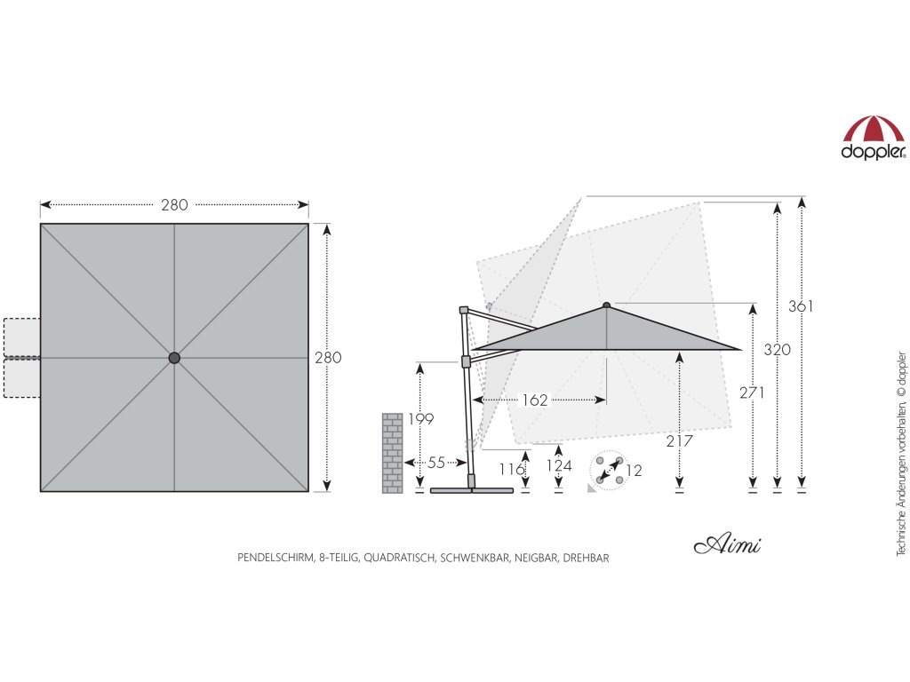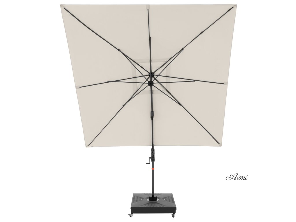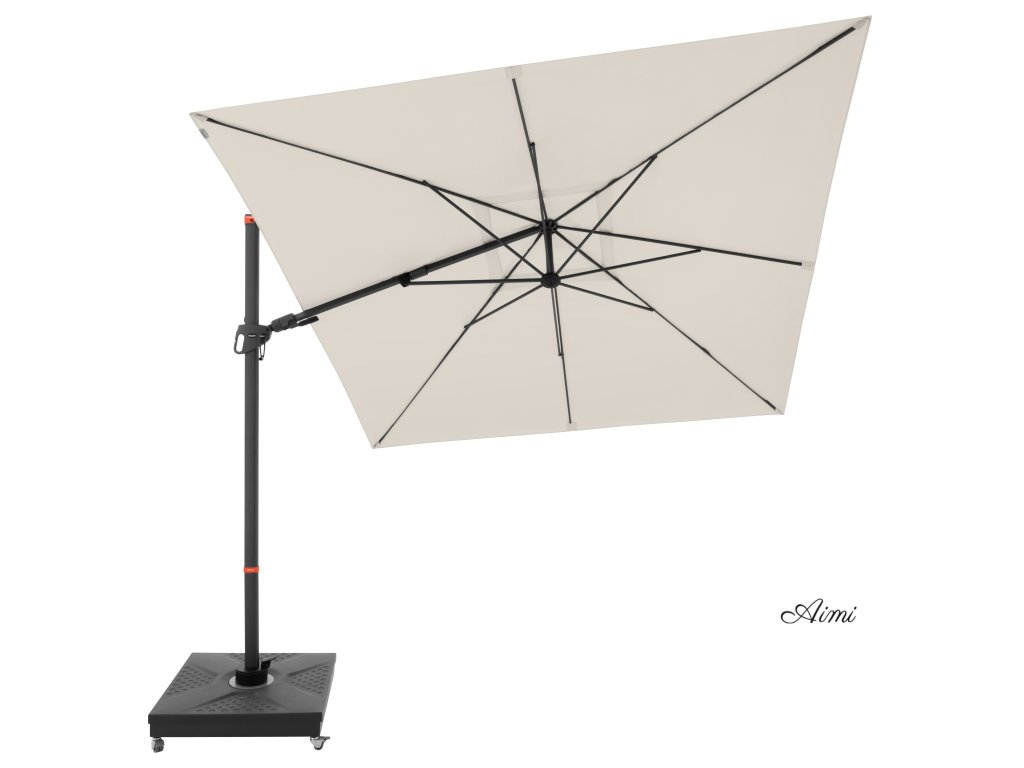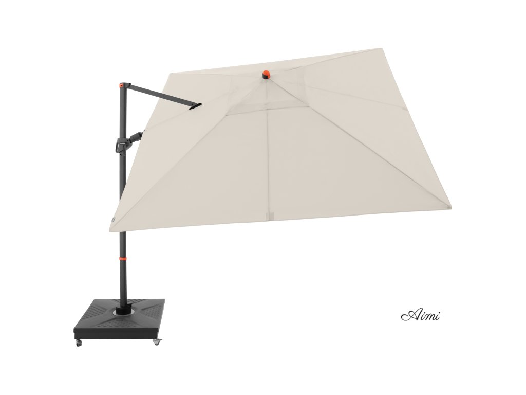 Vďaka štvorcové streche je slnečník obzvlášť vhodný na zatienenie záhradného nábytku. Slnečník je možné tiež otáčať o 360 stupňov, osovo natáčať na obe strany a naklápať dozadu v siedmich polohách.