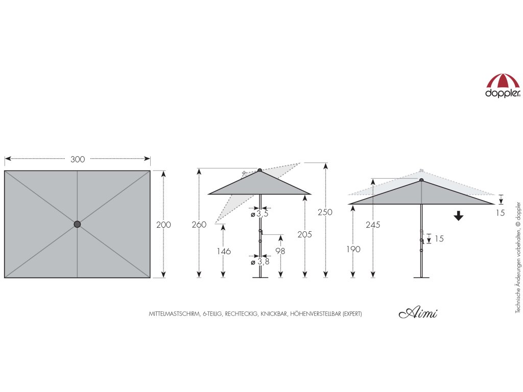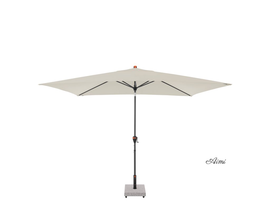 Slnečník je vybavený kľukou na jednoduché otváranie a zatváranie. Komfortná funkcia automatického naklápania umožňuje automatické naklopenie strechy jednoduchým otočením kľučky. Slnečník je možné výškovo nastaviť o 15 cm. Vďaka vzduchovému ventilu v streche sa pod slnečníkom nekumuluje horúci letný vzduch.