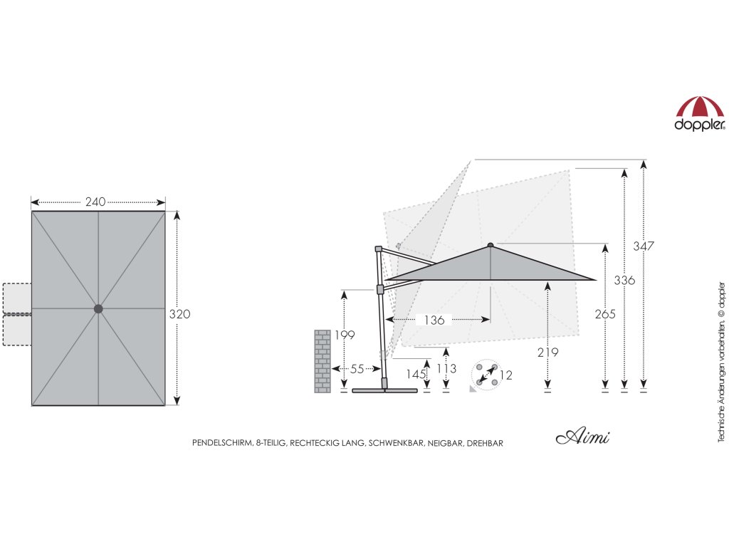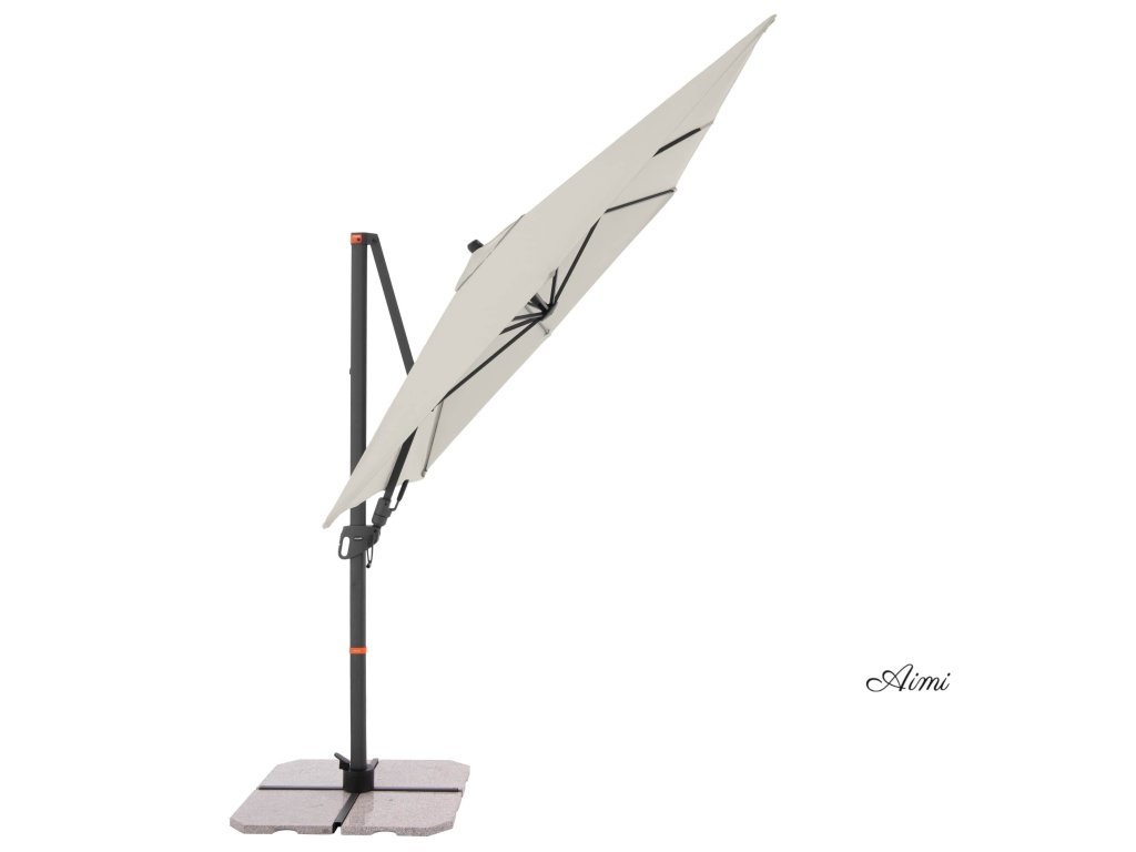 Vďaka obdĺžnikovej streche je slnečník obzvlášť vhodný na zatienenie záhradného nábytku. Slnečník je možné tiež otáčať o 360 stupňov, osovo natáčať na obe strany a naklápať dozadu v siedmich polohách.