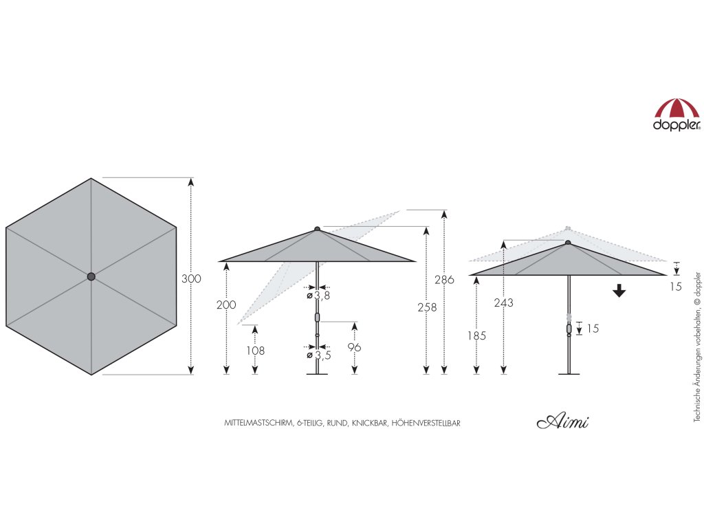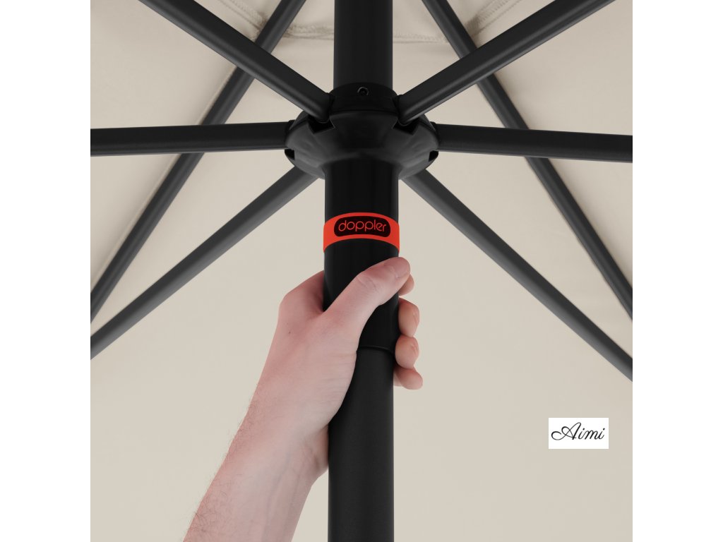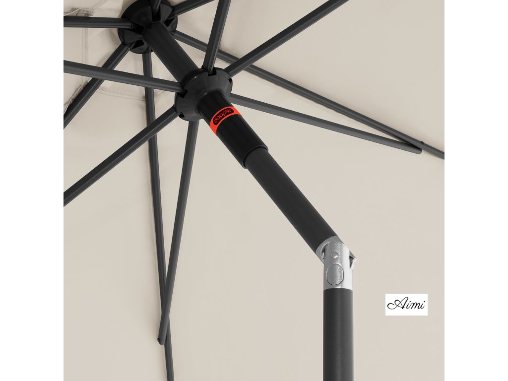 Slnečník je vybavený ""Push up"" funkciou pre ľahšie otváranie a zatváranie. Slnečník disonuje komfortnou funkciou naklopenia strechy. Slnečník je možné výškovo nastaviť o 15 cm. Vďaka vzduchovému ventilu v streche sa pod slnečníkom nekumuluje horúci letný vzduch.
