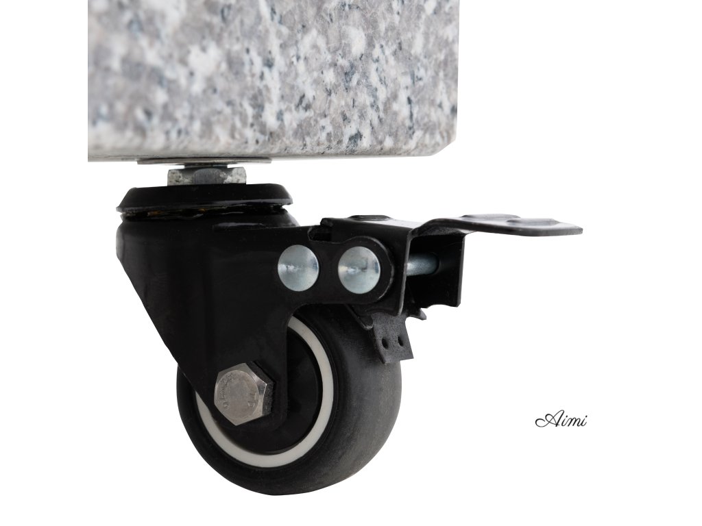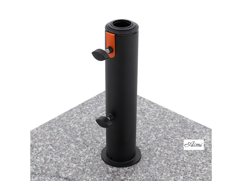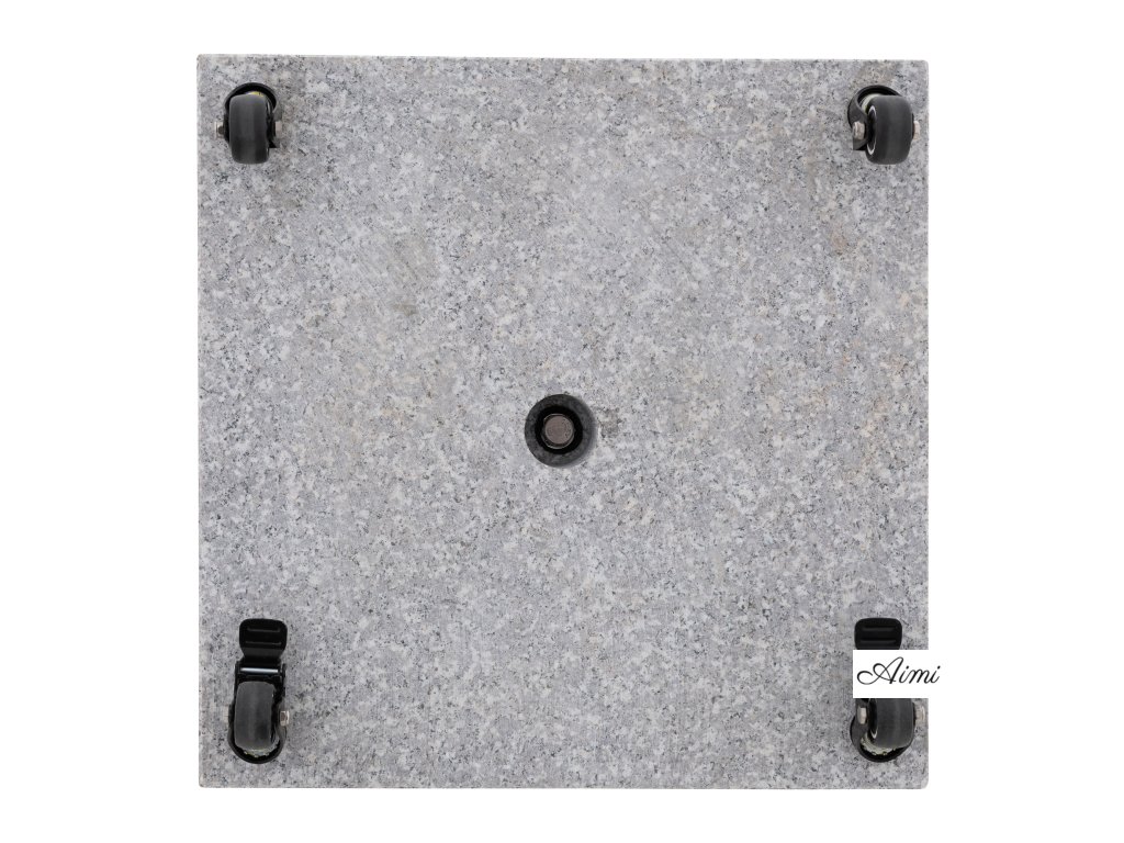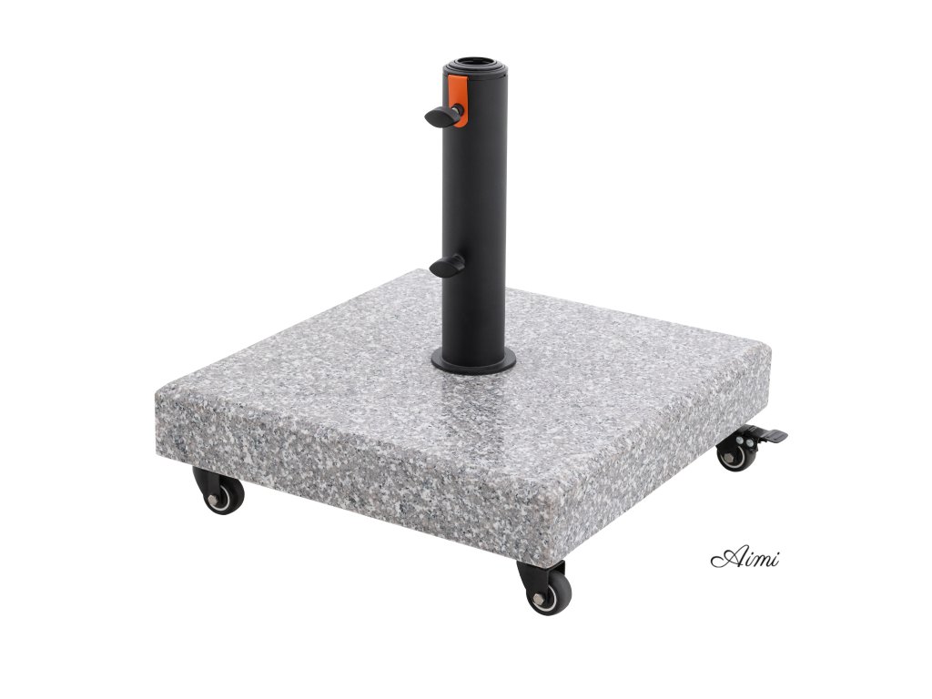 Žulový stojan pre slnečníky myZone je vybavený 4 kolesami, čo umožňuje ho ľahko a pohodlne presúvať, kam je práve potrebné. Stojan je určený pre stredne veľké slnečníky s priemerom strechy až do 305 cm. Odolnú a tvrdú dosku z leštenej žuly dopĺňa rúrka z čiernej nerezovej ocele. Na zaistenie maximálnej stability slnečníka v stojane slúžia 2 zaisťovacie skrutky. Vrátane redukčných krúžkov, umožňujúcich použitie pre priemery tyče slnečníka od 32 do 60 mm. Žula je mimoriadne tvrda a odolná, takže podstavec je absolútne odolný voči vplyvom počasia.
