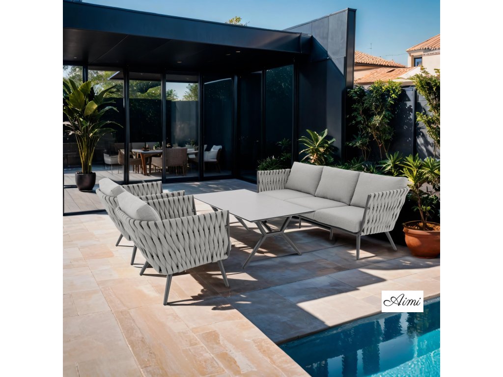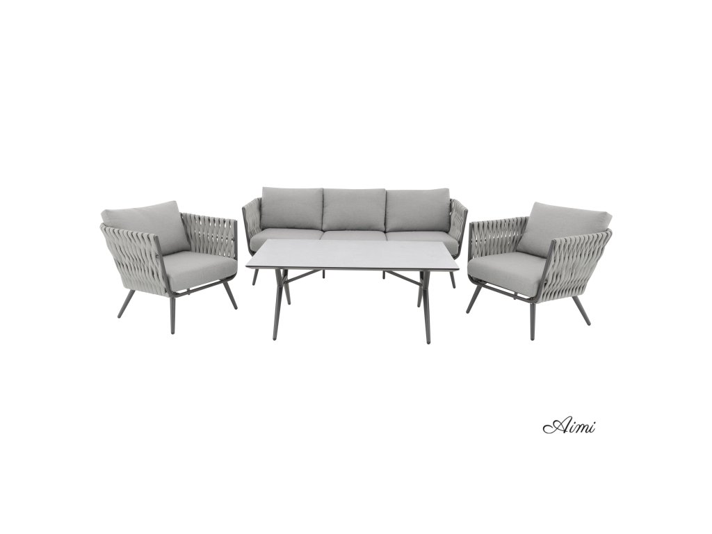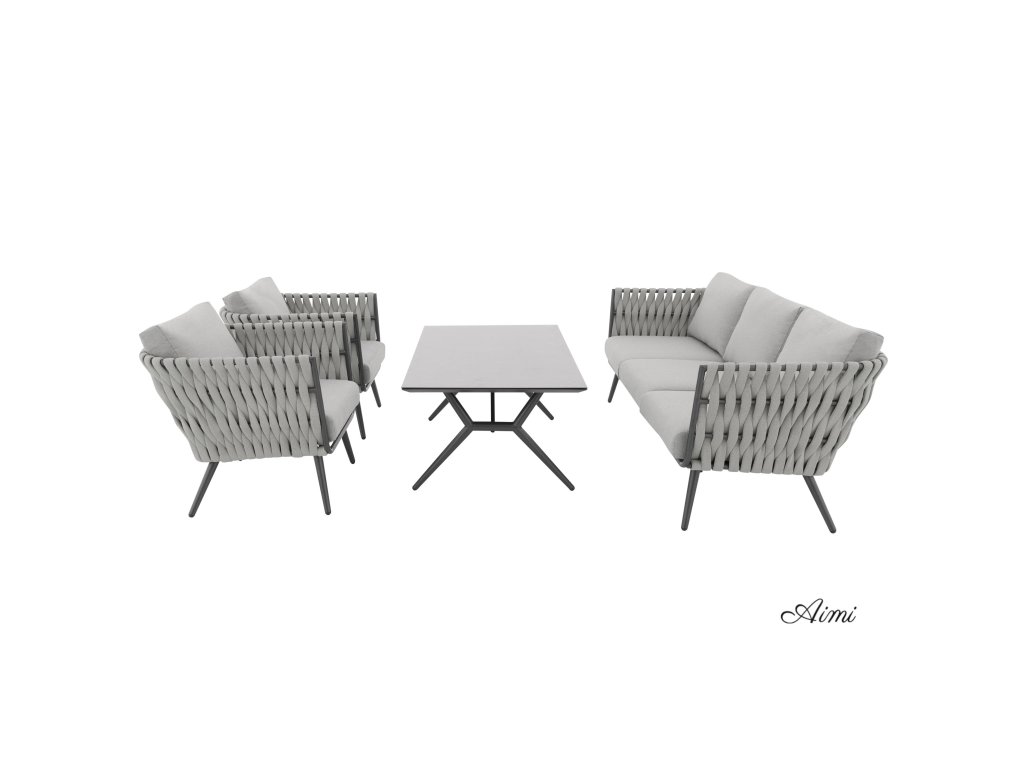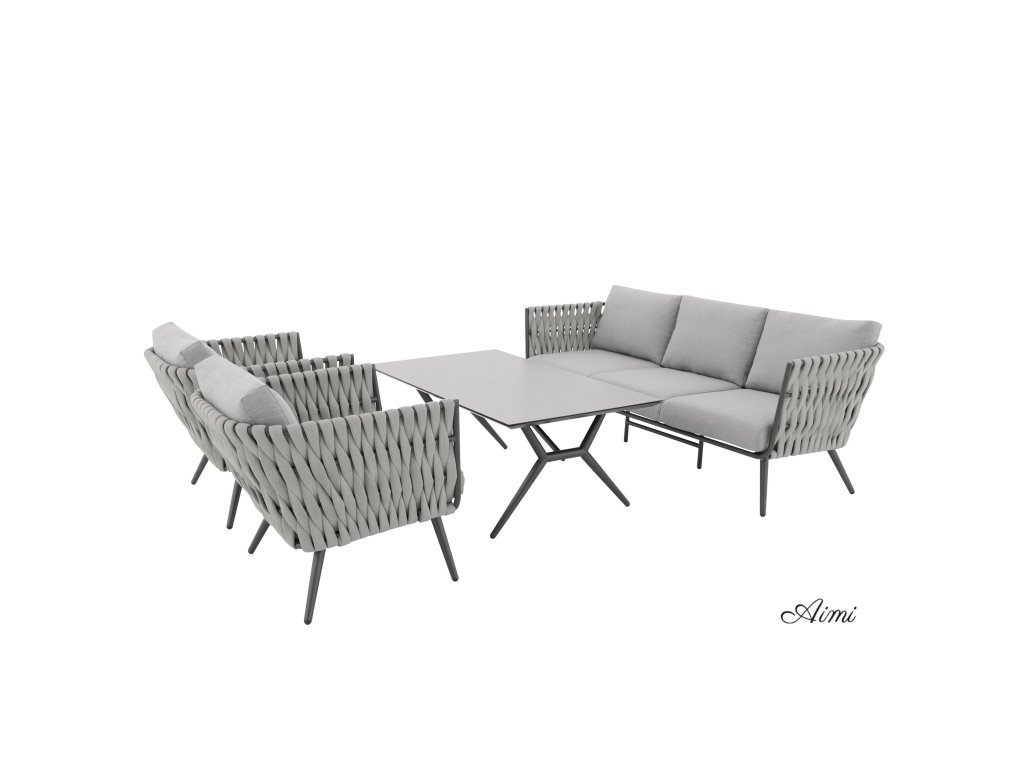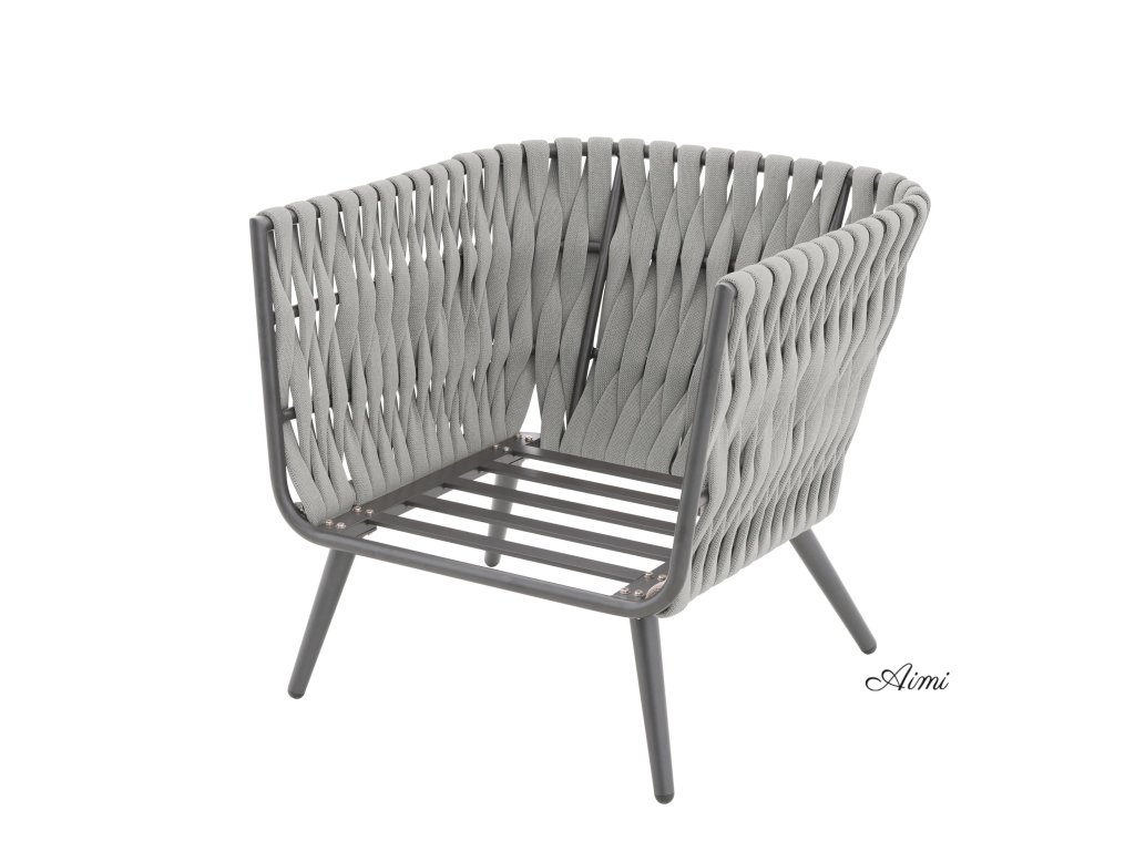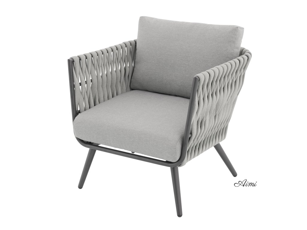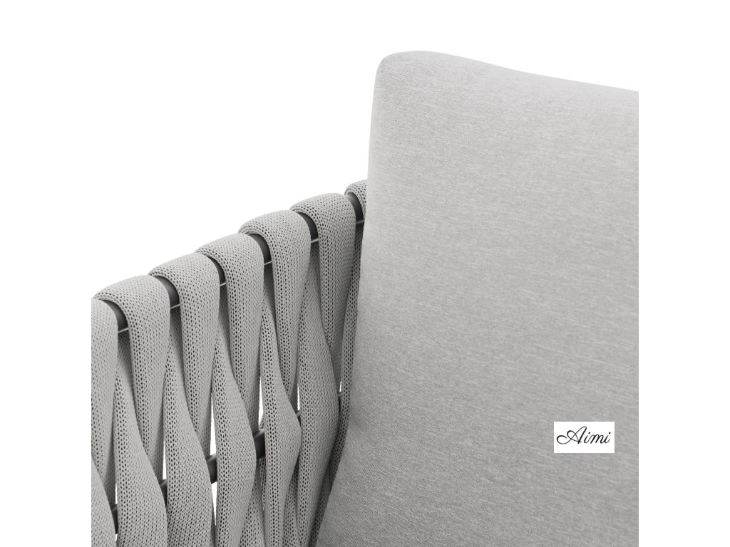 Pevná hliníková konštrukcia s moderným práškovým nástrekom v antracitovej farbe dodáva zostave nielen robustnosť, ale aj nadčasový vzhľad, ktorý sa hodí do každého exteriéru aj interiéru. Provazový výplet na opierkach a područkách zaisťuje atraktívny dizajn a pohodlie, ktoré oceníte pri každom posedení.