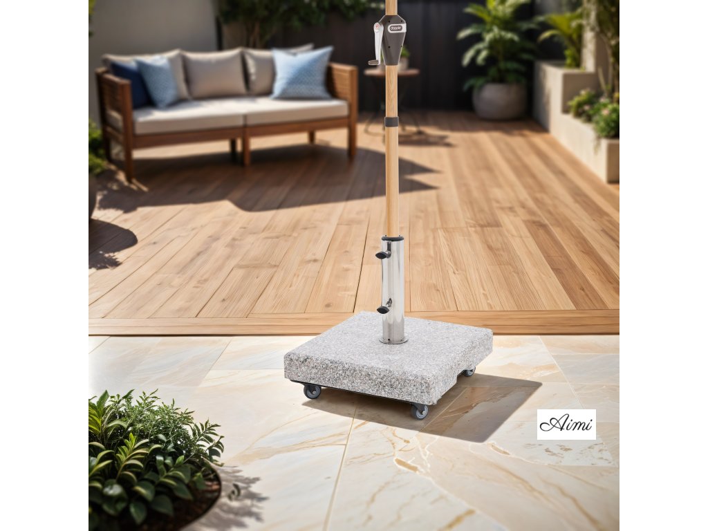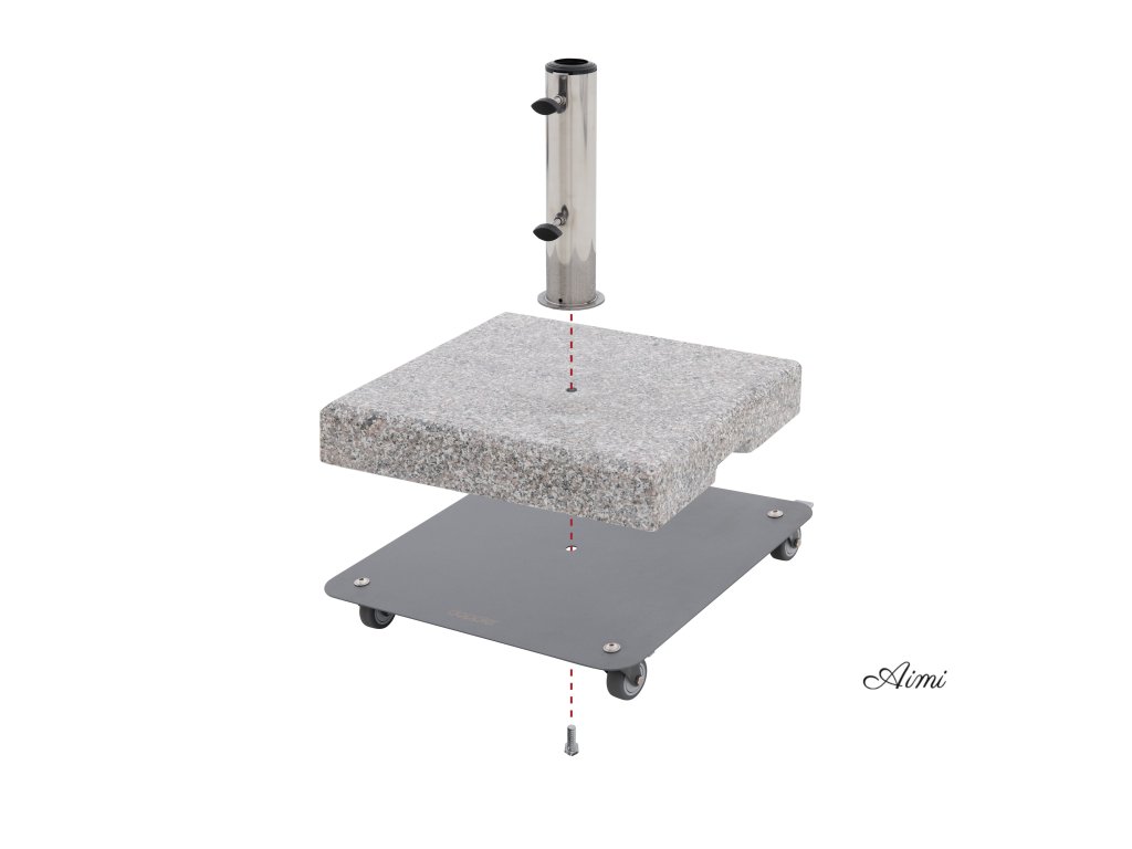 Robustná kovová základňa Vario je voliteľné príslušenstvo na umiestnenie žulových soklov do 50 kg, ktoré nie sú vybavené kolieskami. Vďaka kolieskam na spodnej strane ju môžete ľahko presunúť na požadované miesto na terase alebo záhrade. Pre zvýšenie stability je možné žulové sokle jednoducho pripevniť k základni pomocou stredovej skrutky, čo zaistí pevné a stabilné uchytenie. Praktická základňa Vario je navrhnutá na dlhodobé vonkajšie použitie a poskytuje stabilnú podporu.