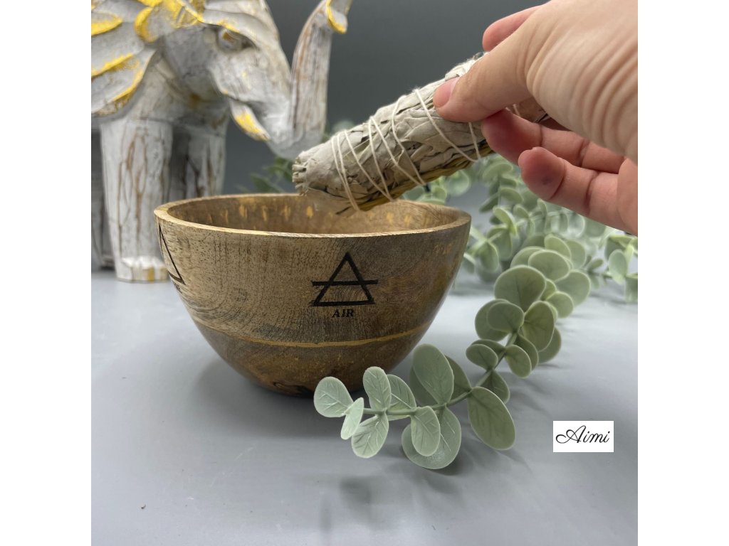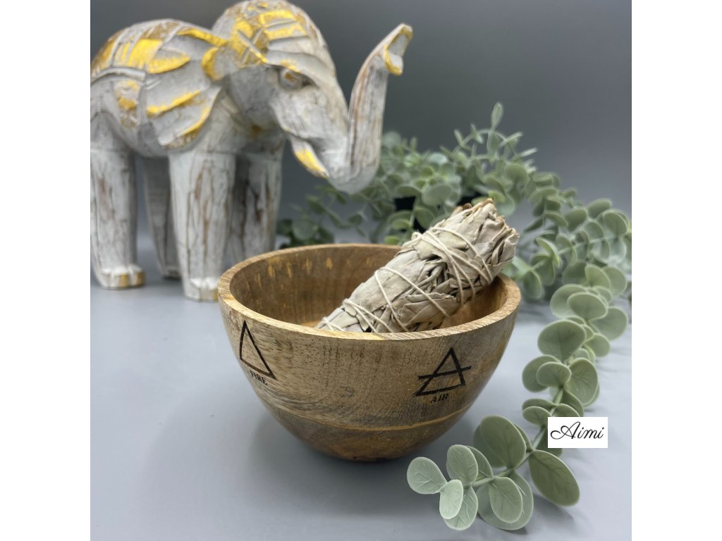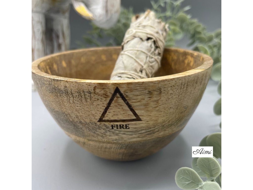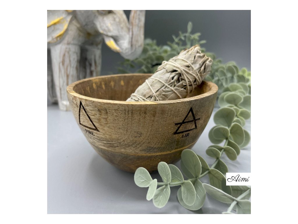 Drevená Rituálna Miska na Vykurovacie Zväzky – Štyri Elementy – 12x7 cm