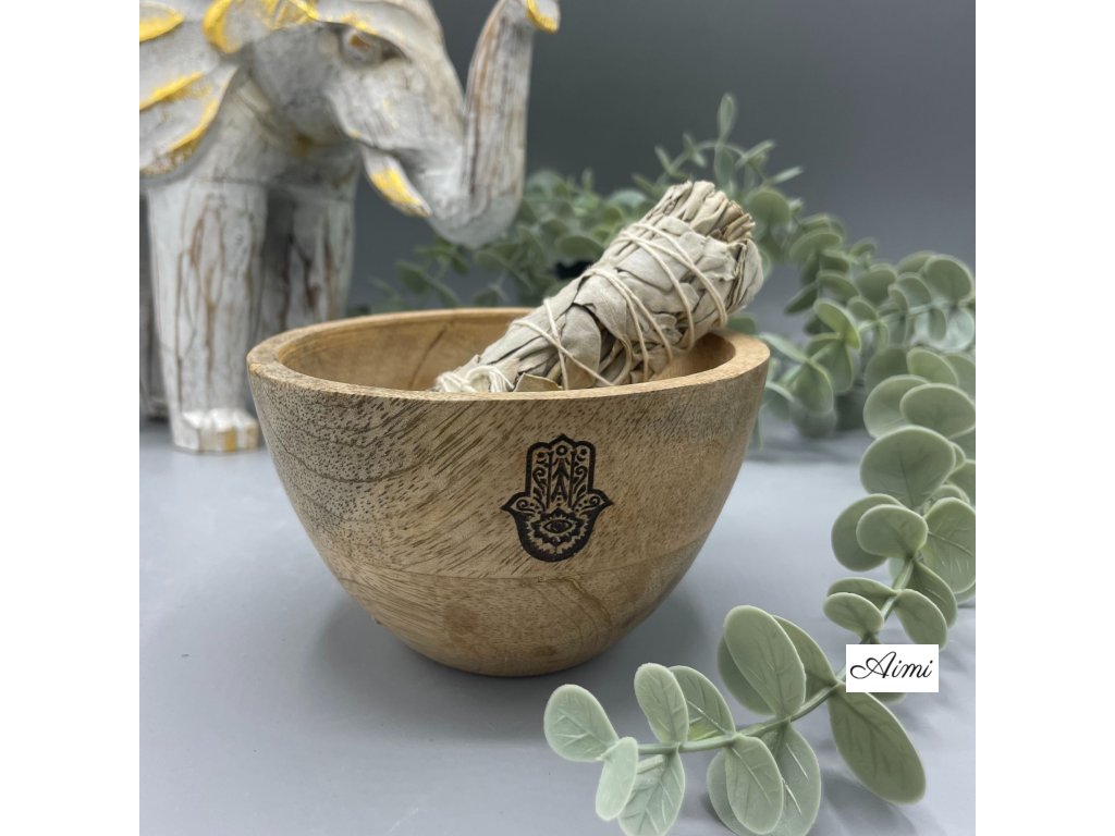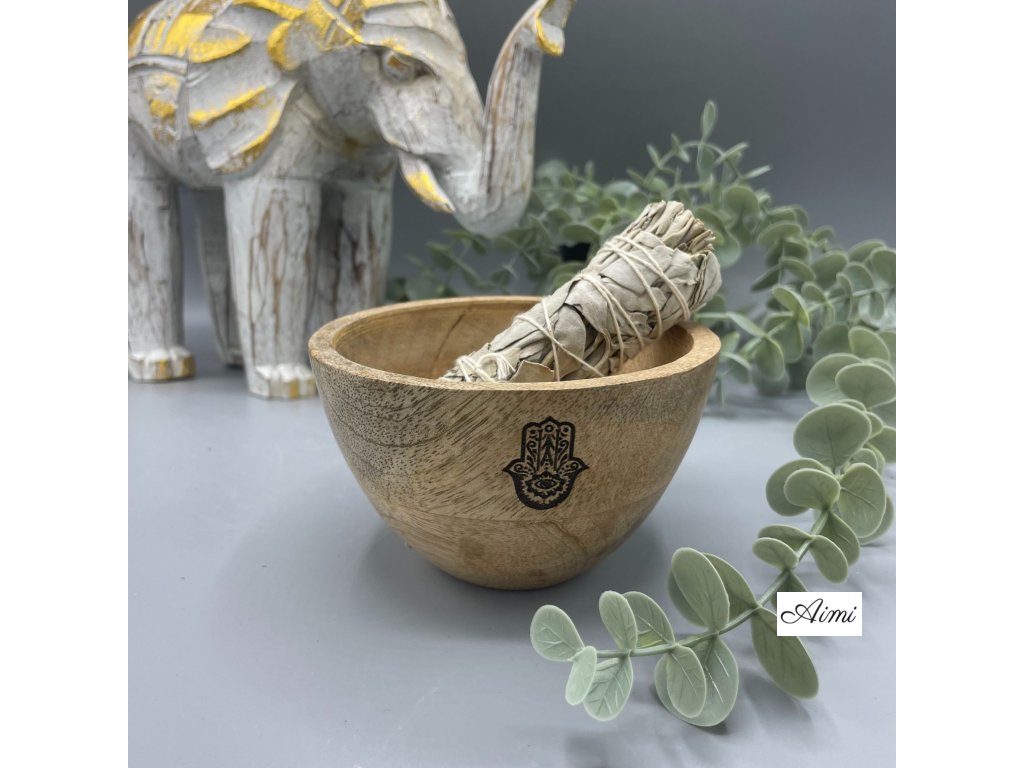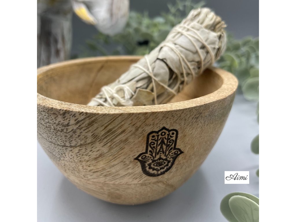 Drevená Rituálna Miska na Vykurovacie Zväzky - Hamsa - 12x7cm
