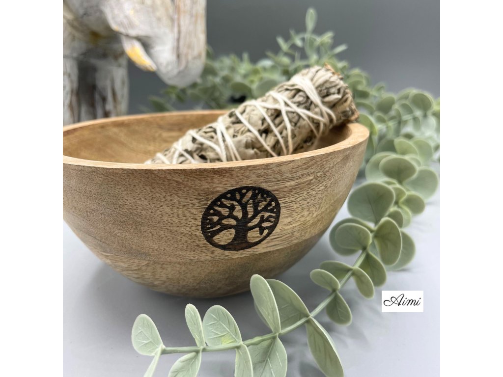 Drevená Rituálna Miska na Vykurovacie Zväzky - Strom Života - 14x7cm