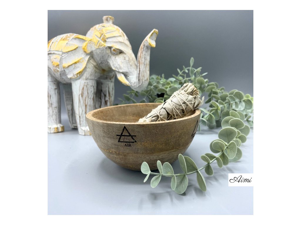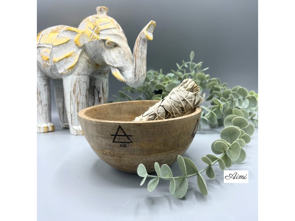 Drevená Rituálna Miska na Vykurovacie Zväzky - Štyri elementy - 14x7cm