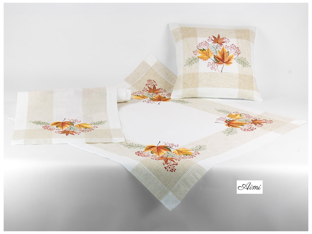 Jesenný Vyšívaný obrus - rôzne veľkosti a obliečky na vankúš - motív 5452 JAVOROVÉ LISTY