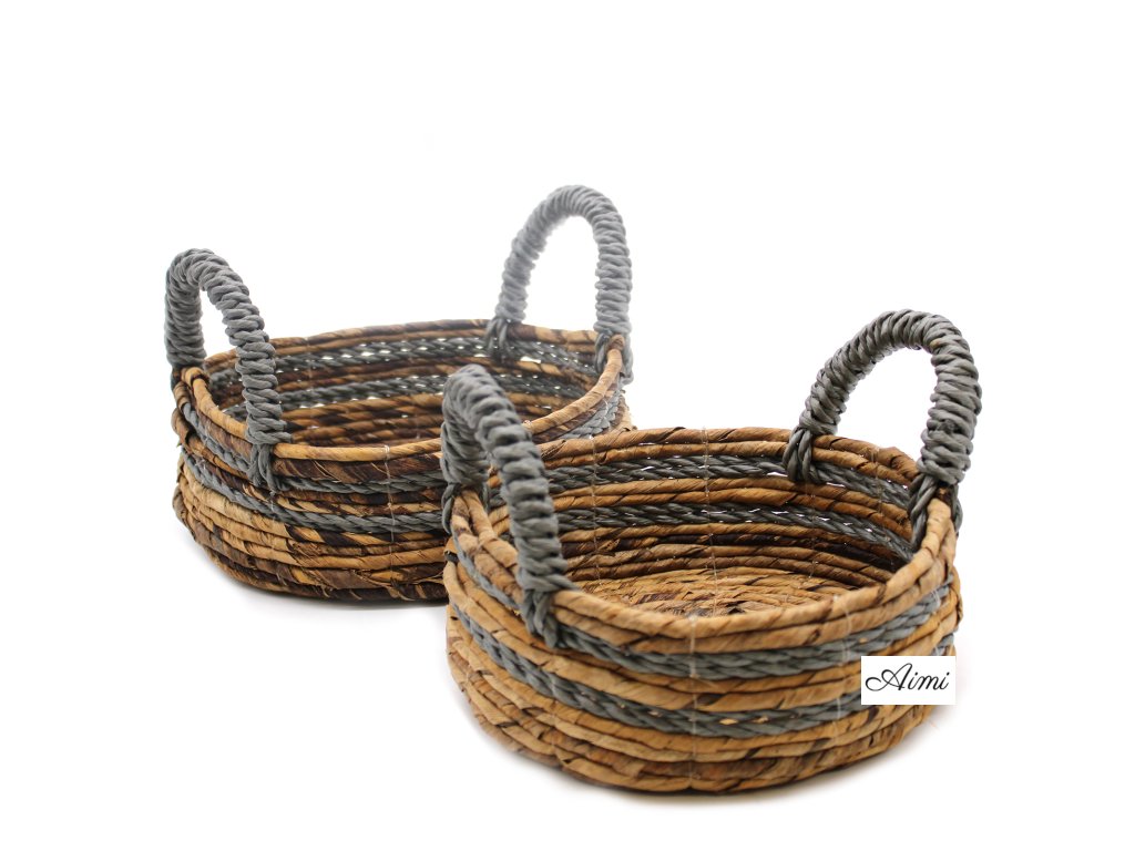 Košíky z Bananového Listu a Šedej Raffie- Súprava 2 kusov
