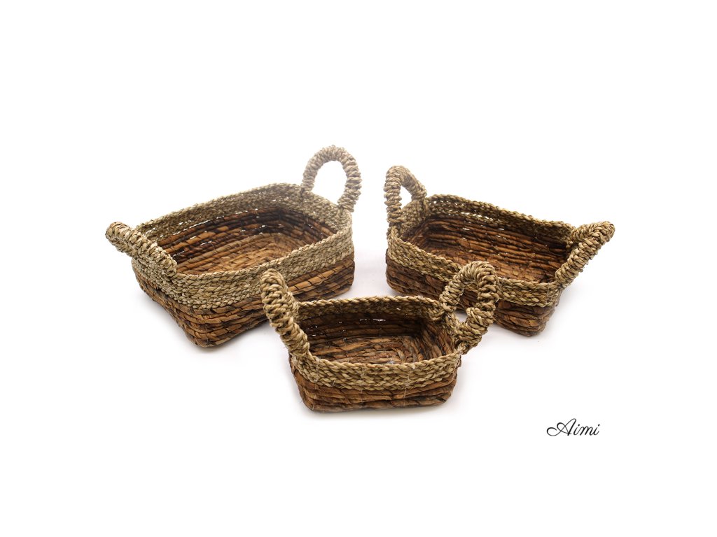 Vyznačujú sa prirodzenou textúrou a sú vyrobené z morskej trávy a banánových listov. Tieto košíky majú všestranné využitie, sú ideálne na vystavenie vašich produktov, môžu byť štýlovým úložným riešením, ich design je vhodný do každej domácnosti, kancelárie alebo dokonca štúdia jogy.
