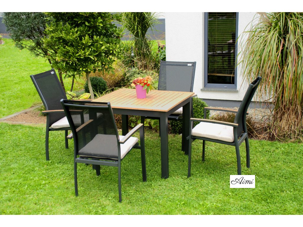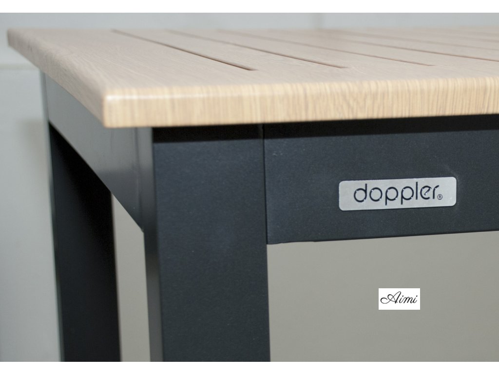 Štvorcový stôl EXPERT WOOD má odolnú hliníkovú konštrukciu v antracitovej farbe. Rebrovaná hliníková doska stola má práškový nástrek v dekore dreva. Vďaka tomu je stôl ľahký, bezúdržbový a odolný poveternostným vplyvom. Tým sa stáva záhradným nábytkom s dlhou životnosťou. Výhodou sú aj regulačné kolieska na nohách stola, ktoré pomáhajú vyrovnať výšku dosky aj na nerovnom vonkajšom povrchu.