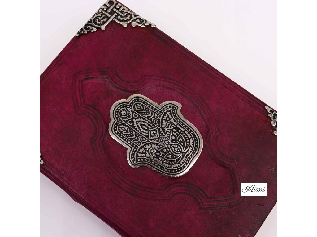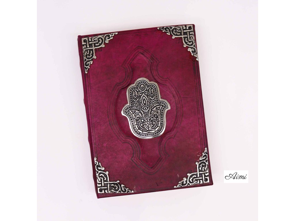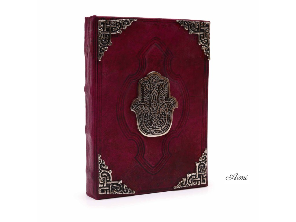 Červený Zápisník z Hrubej Kože – Zinkový Dekor Hamsa – 200 Strán s Ozdobným Okrajom – 26 x 18 cm