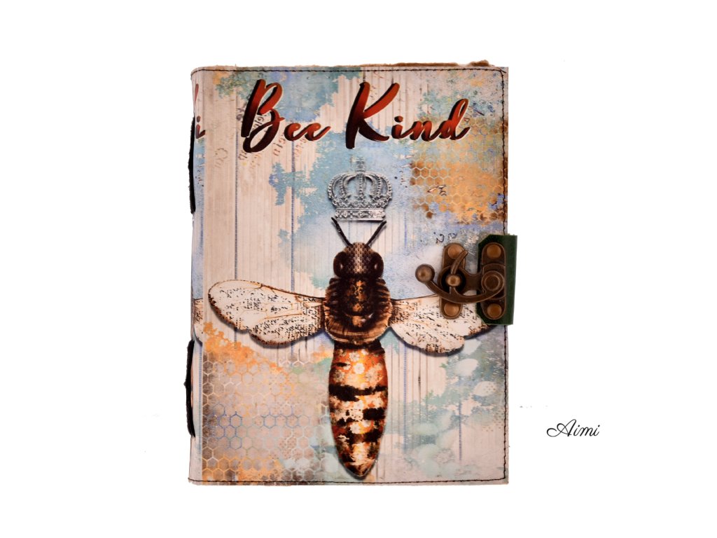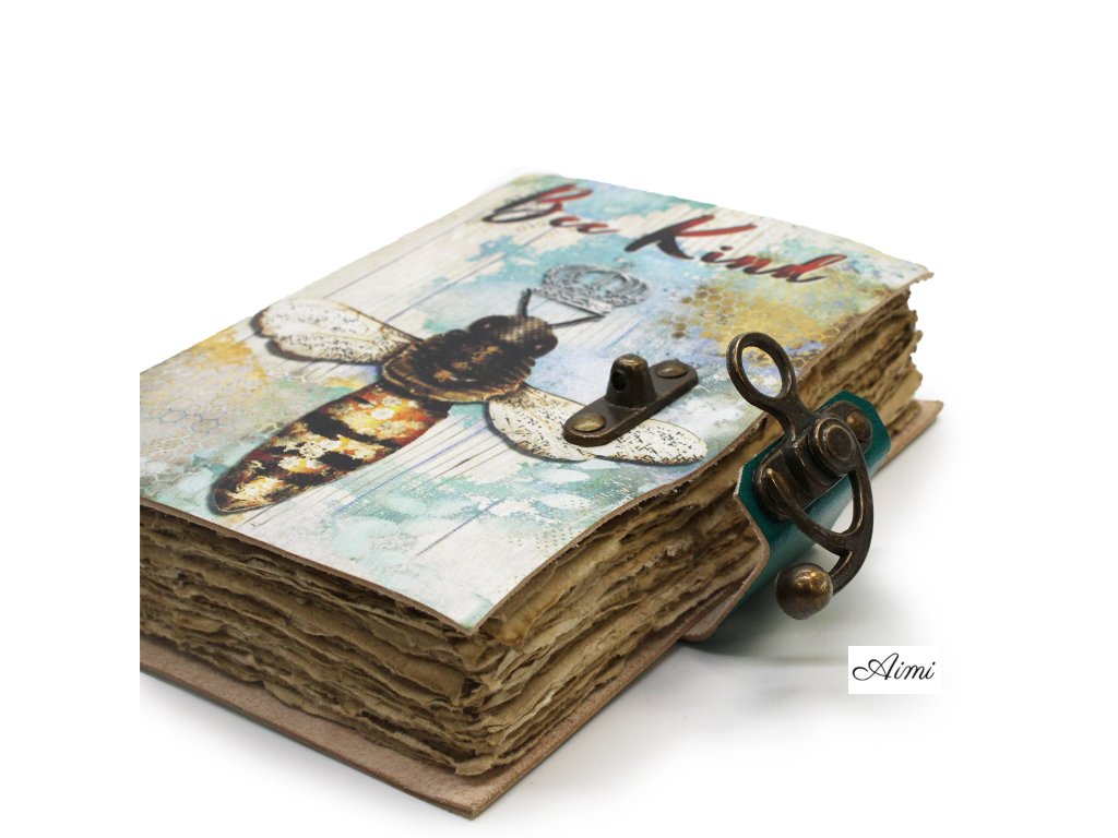Kožený Zápisník "Bee Kind" Rozstrapkané Okraje Strán