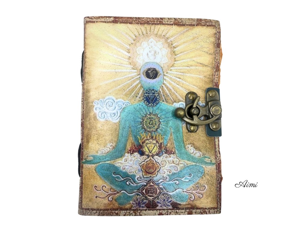 Kožený Zápisník "Budha Sedem Čakier" s Okrajom (12.5cmX17.5cm)